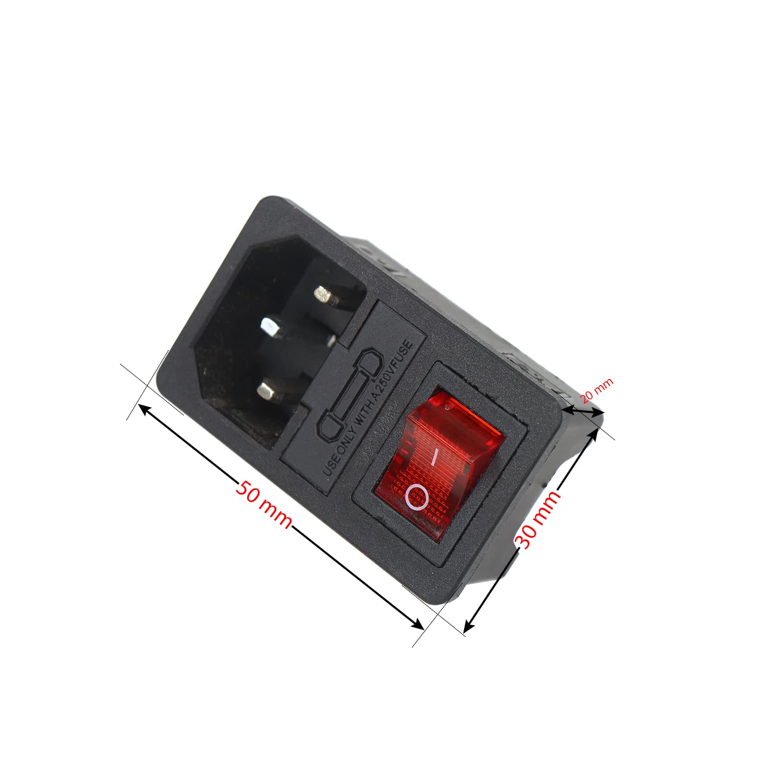 IEC male power with an integral switch and fuse holder(Fuse is not included). This Male Power design with Fuse Holder(Use Only with 250V Fuse). Perfect for your CNC controller box.