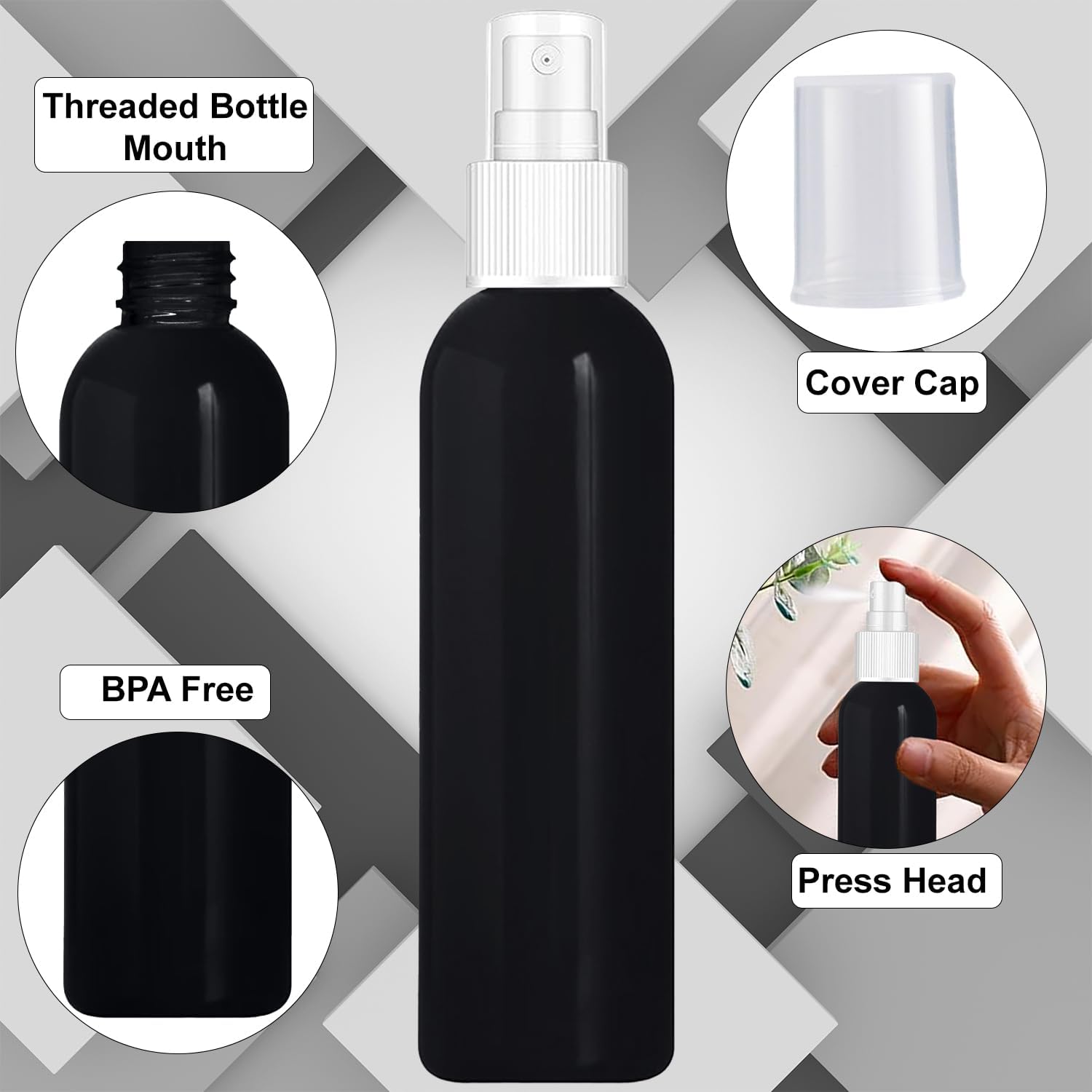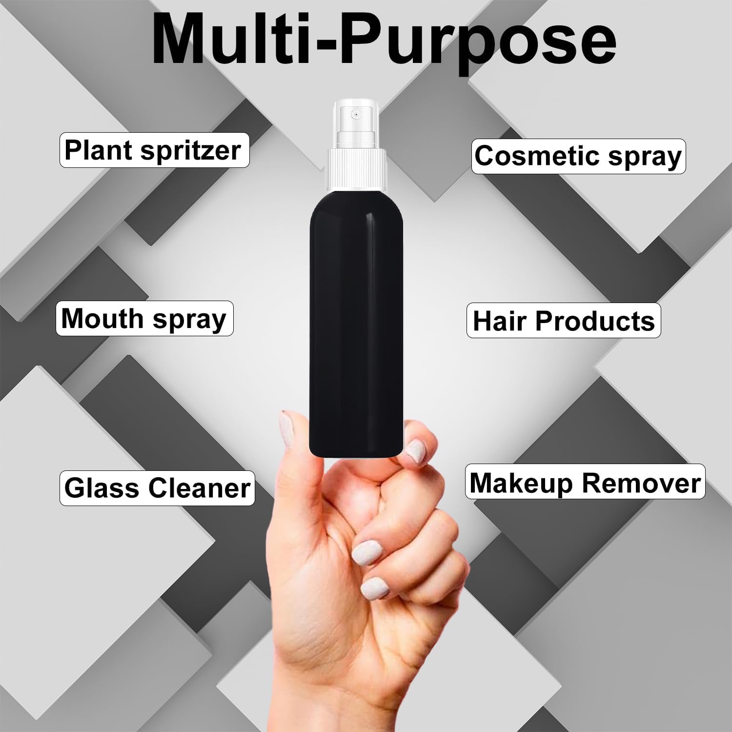Package Content :- 4 black Bottles, 4 White Mist Spray Pumps. The mini spray bottles are made of high quality PVC, BPA free, durable, refillable and reusable, tasteless and non-toxic, TSA approved travel bottles, you can take them everywhere.