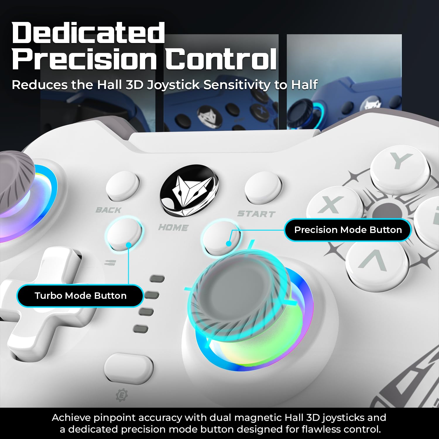 𝗭𝗲𝗿𝗼 𝗗𝗿𝗶𝗳𝘁 𝗣𝗿𝗲𝗰𝗶𝘀𝗶𝗼𝗻 𝘄𝗶𝘁𝗵 𝗛𝗮𝗹𝗹 𝗘𝗳𝗳𝗲𝗰𝘁 𝗝𝗼𝘆𝘀𝘁𝗶𝗰𝗸𝘀: Enjoy ultra-smooth and responsive movement thanks to HallSense magnetic joysticks—making this one of the most reliable wireless gamepads for FPS and competitive gaming.