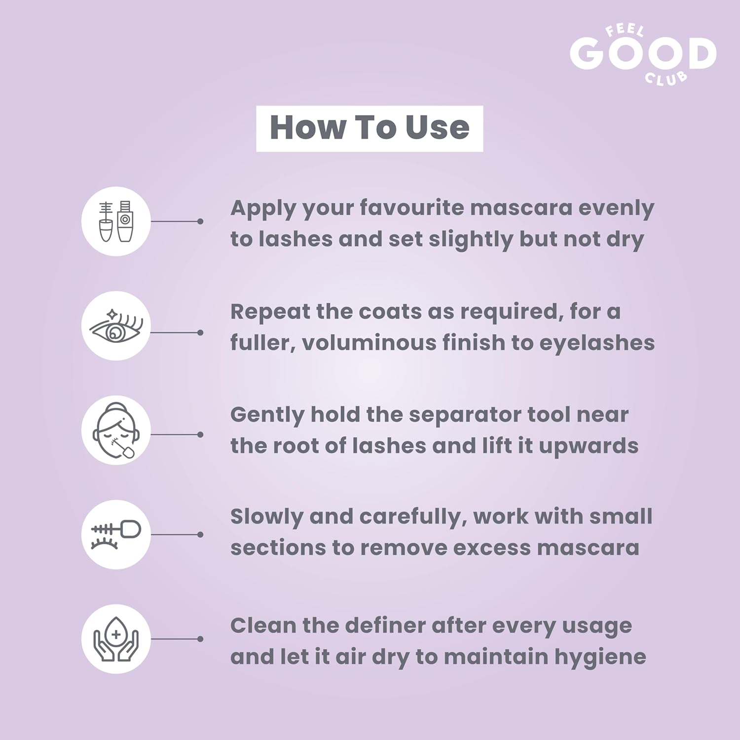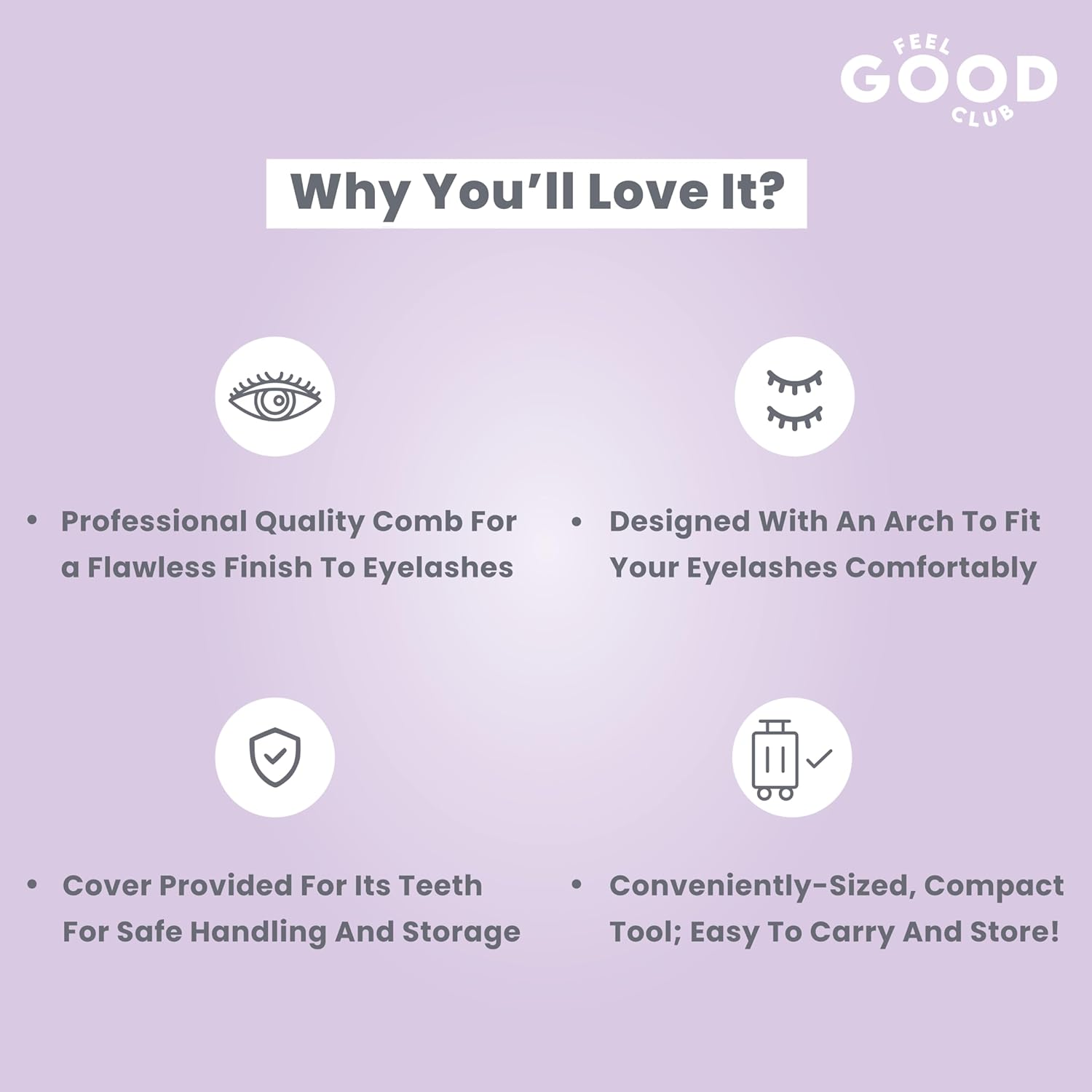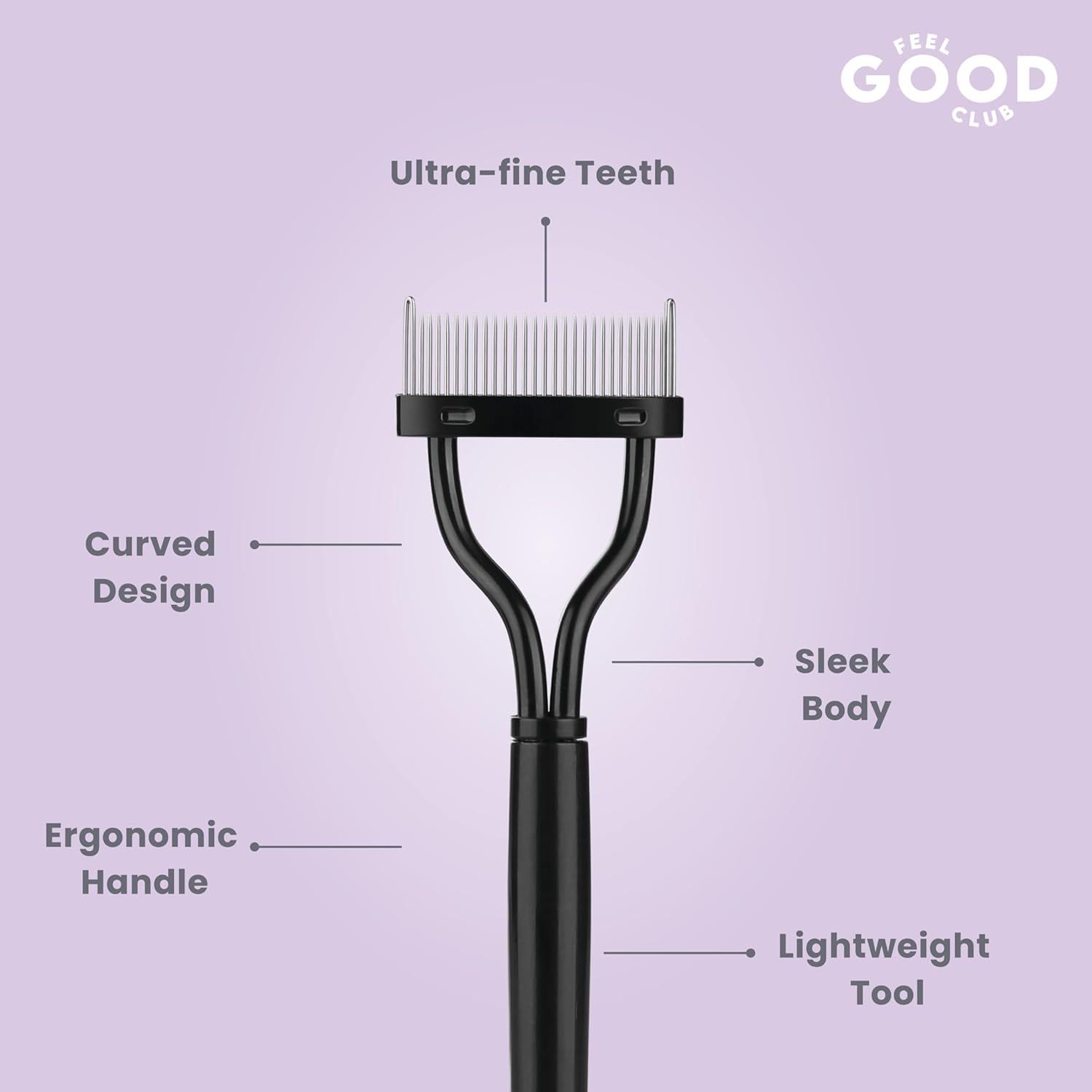 Feel Good Club Lash Separator Comb Brush for Eye Makeup Clump Removal and Mascara Layer Tool Suitable for Natural or False Lashes Falsies Root to Tip Grooming Eyelid Beauty Applicator