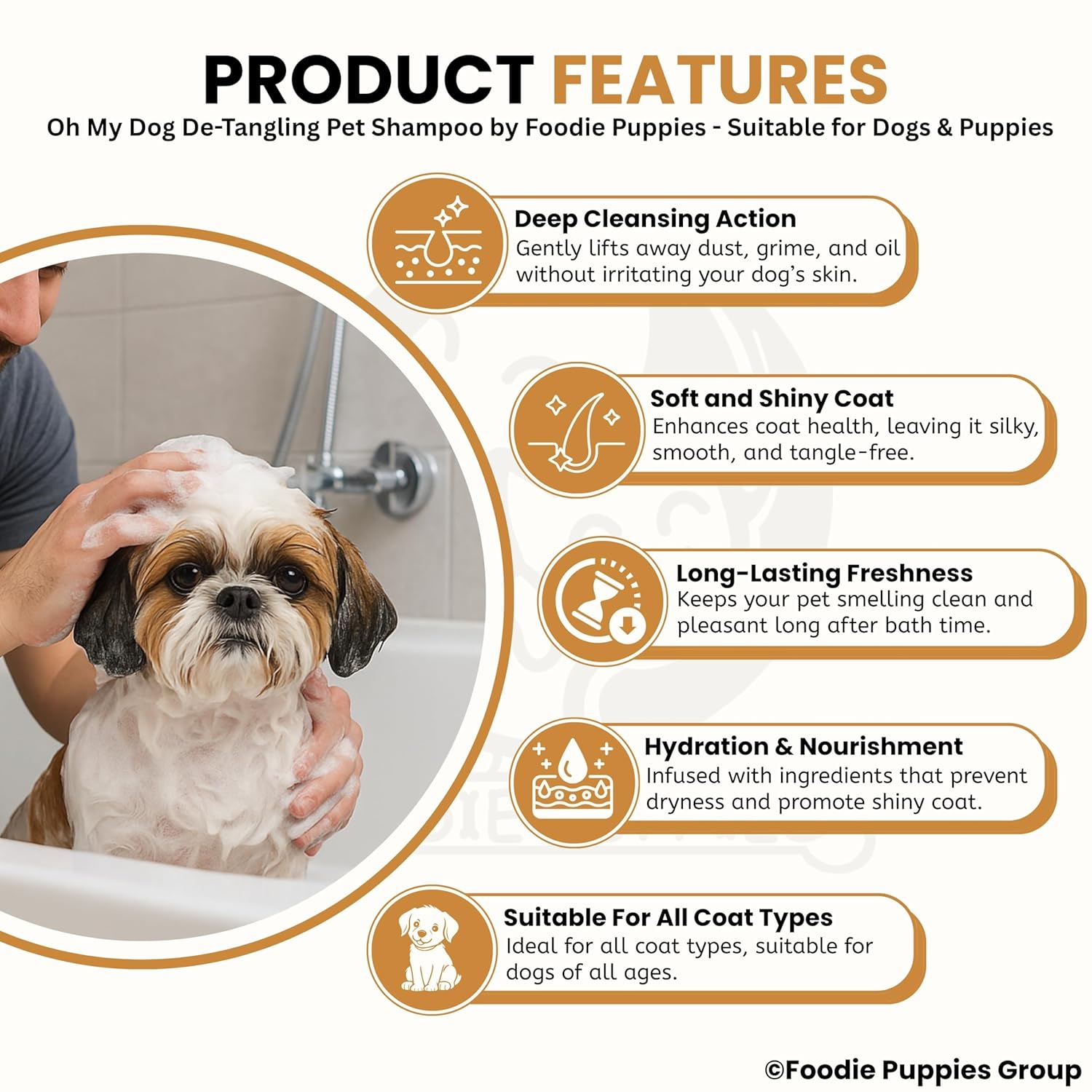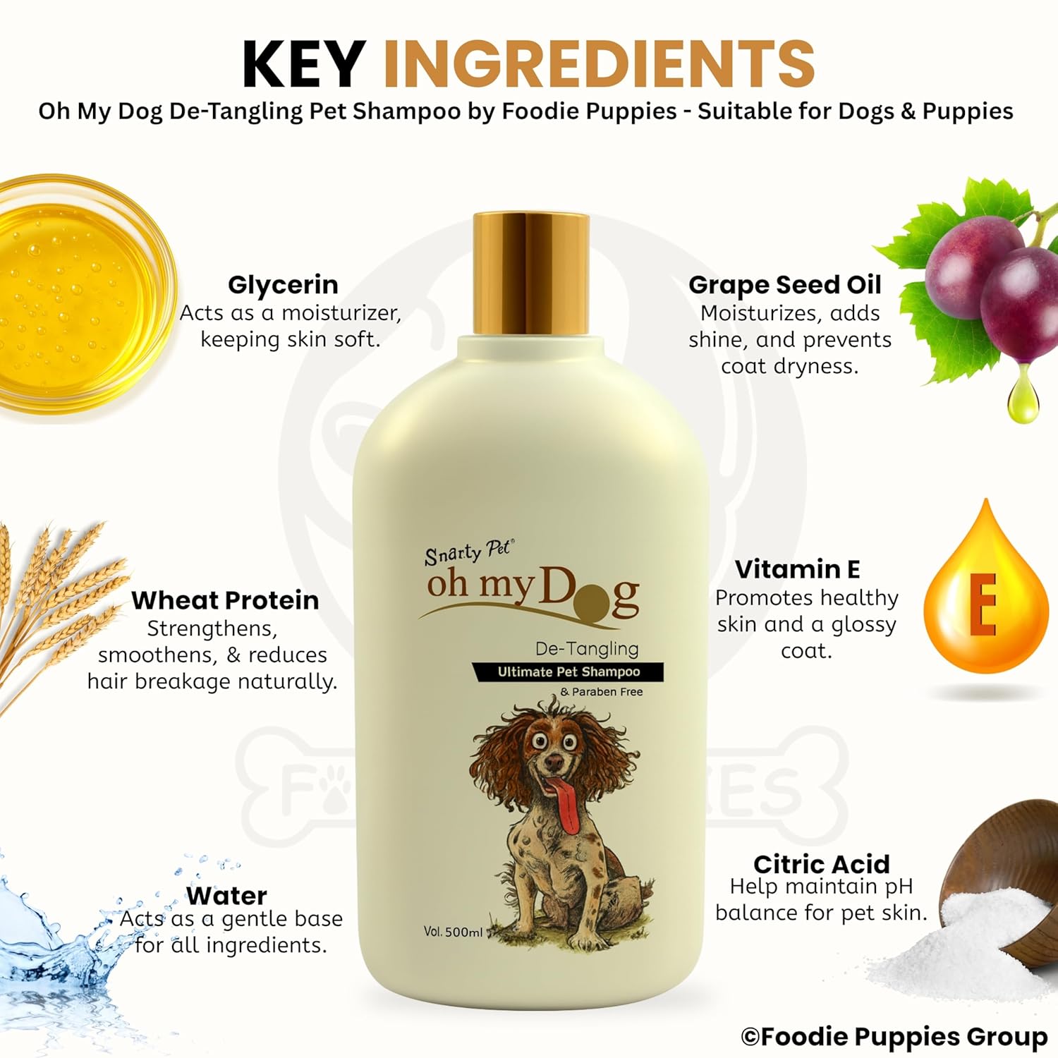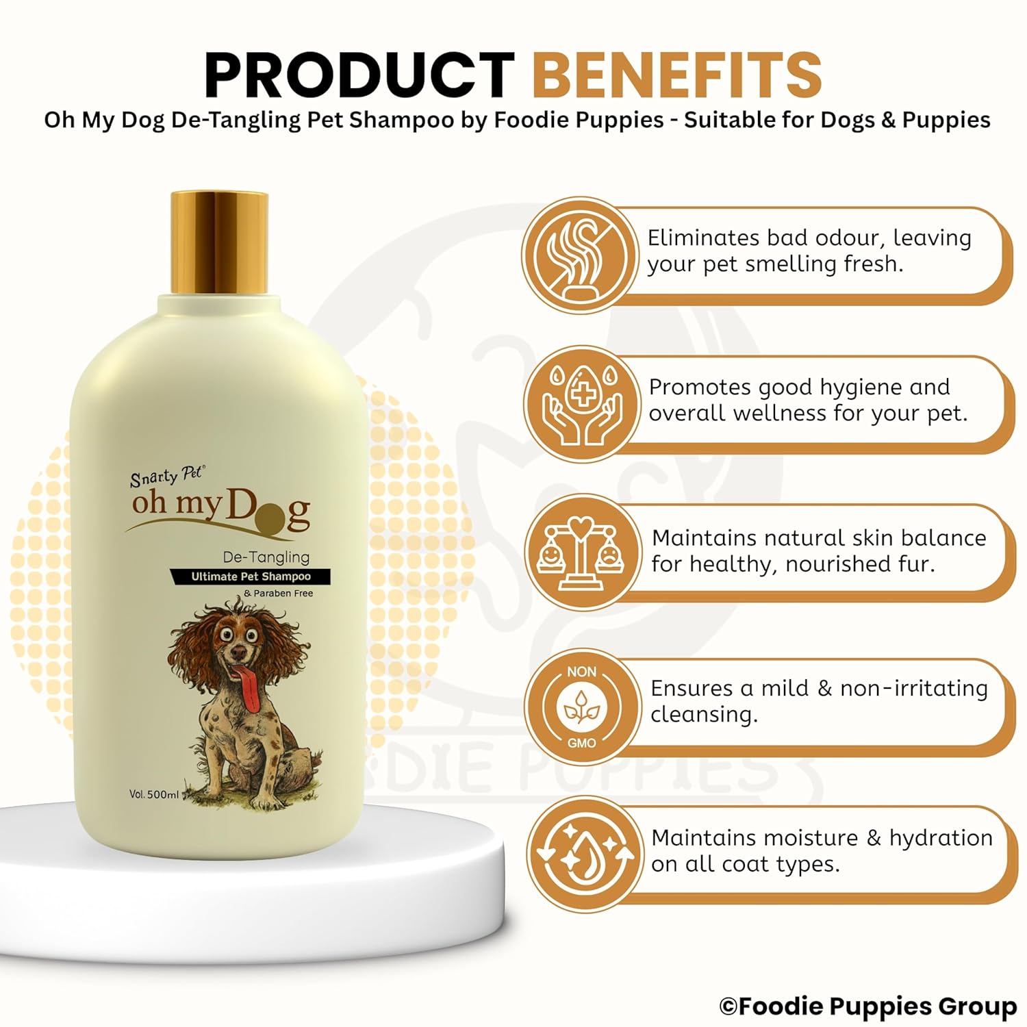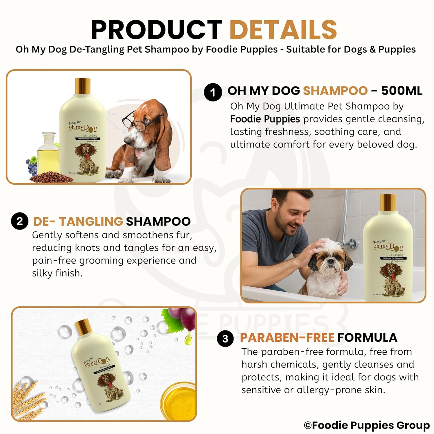 Foodie Puppies Oh My Dog Detangling Shampoo for Dogs and Puppies – 500ml | Paraben & Cruelty-Free Ultimate Pet Shampoo | Shiny, Soft and Tangle-Free Fur | Suitable for All Breeds and Sizes
