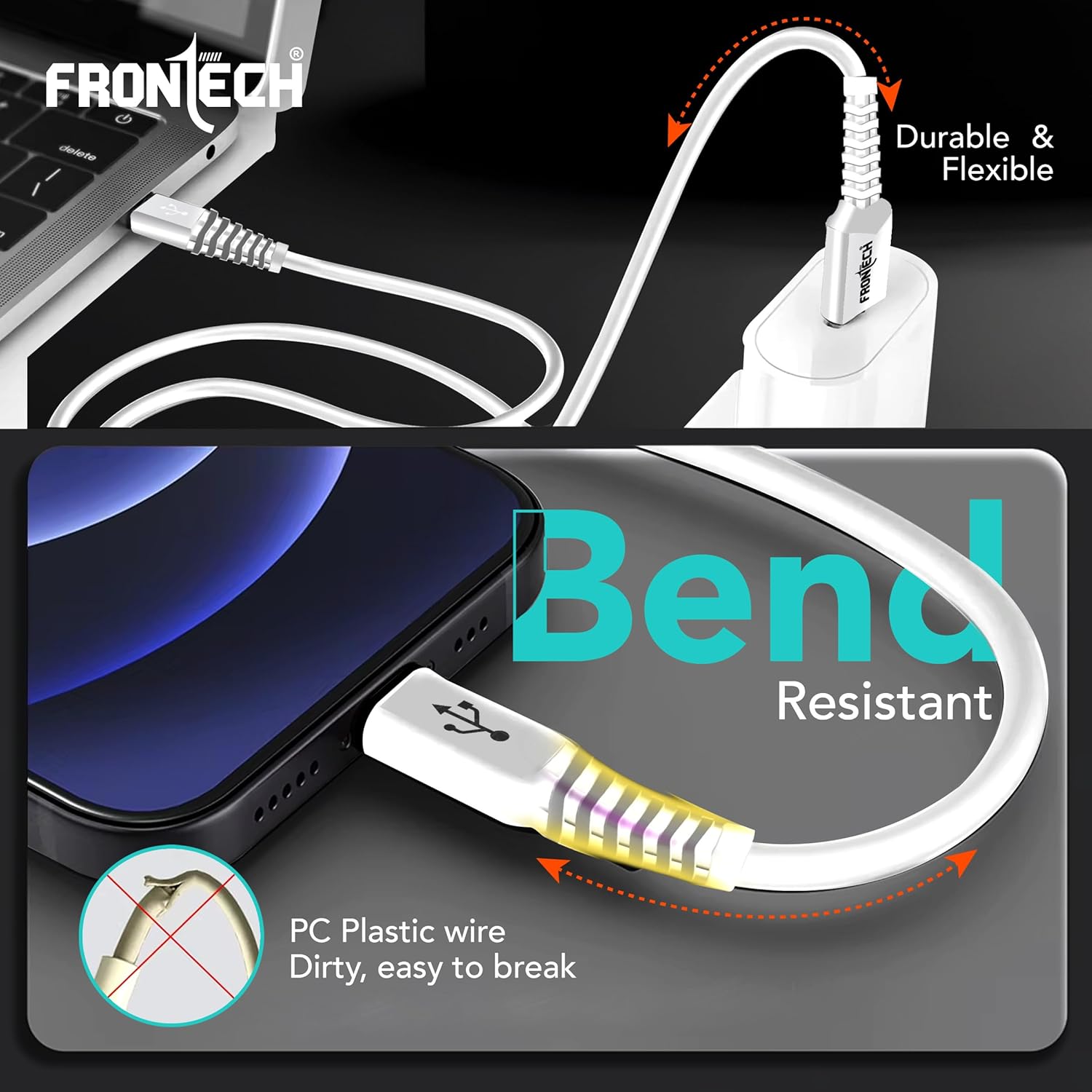 FRONTECH 12W / 2.4A Fast Charging 1M Braided USB to V8 Data Cable for Smartphones, Tablets, Laptops & other Micro USB V8 Devices, Charging and Data Sync (1021 – White)