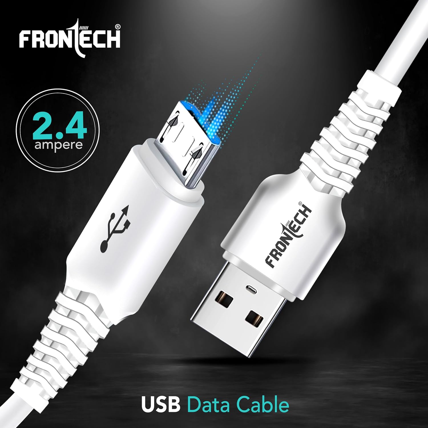 USB Type A to Micro USB V8 cable with 2.4A fast charging support & high-speed data transfer.
