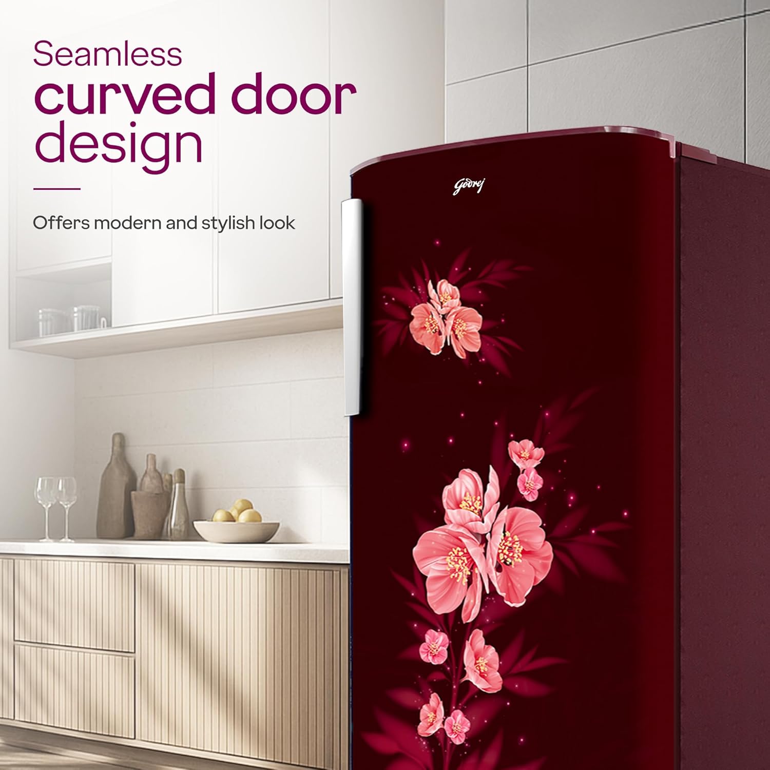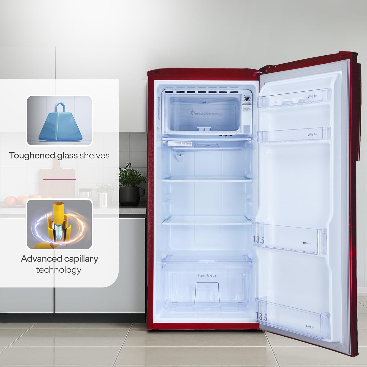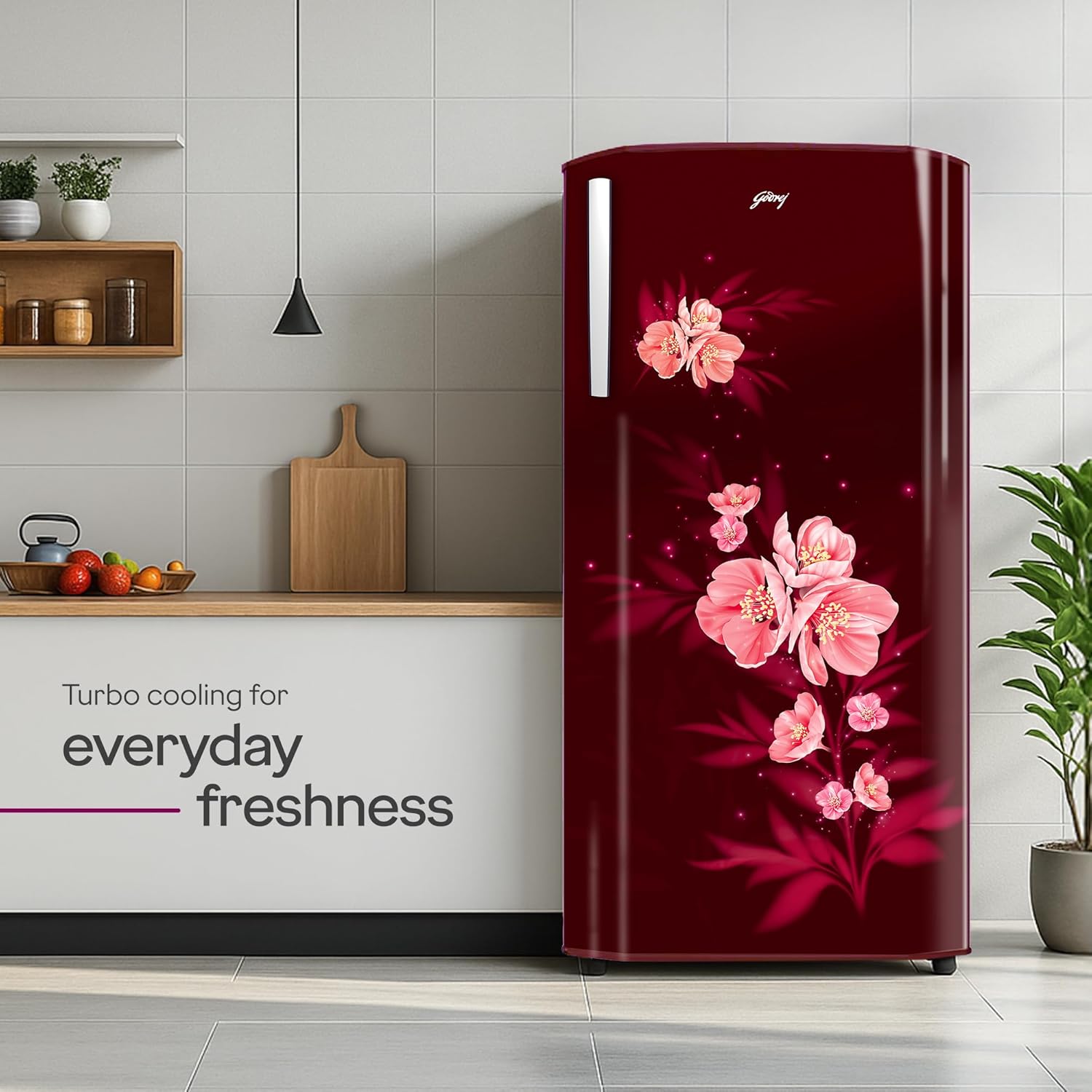 Godrej 180 L 5 Star | Turbo Cooling Technology | 24 Days Farm Freshness | Toughened Glass Shelves | Large Vegetable Tray | Direct Cool Single Door Refrigerator (RD EDGENEO 207E THF MP WN, Maple Wine)