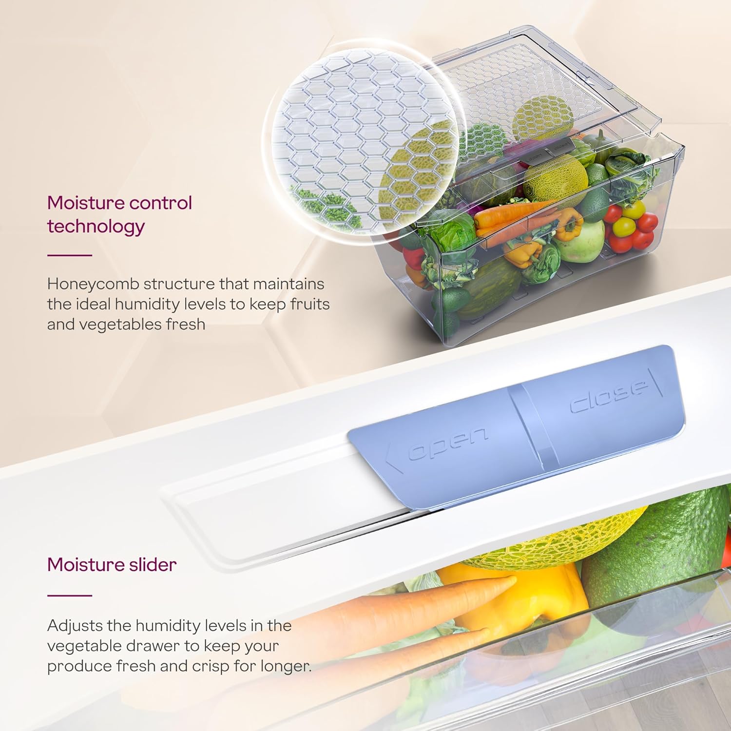 Energy Efficient Inverter Compressor: The energy efficient inverter compressor, which is not only quieter but is also a variable speed compressor, as it adjusts the cooling as per the refrigerator operation.