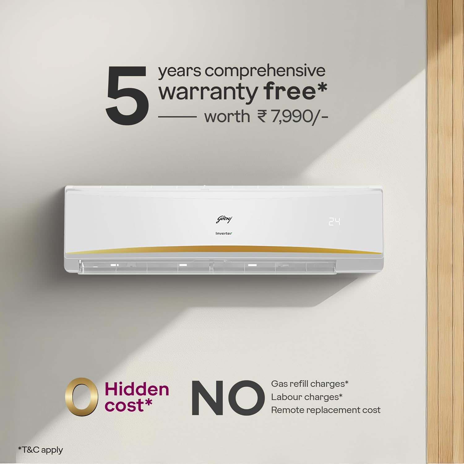 Manufacturer Warranty: 5 YEARS FREE COMPREHENSIVE WARRANTY, applicable on purchase after 1st Sept 2024 (Coverage: Labor and all functional parts: Gas charging, compressor, Inverter controller drive, Remote, Indoor PCB, Fan Motors, Heat Exchange coils), 10 years warranty on compressor