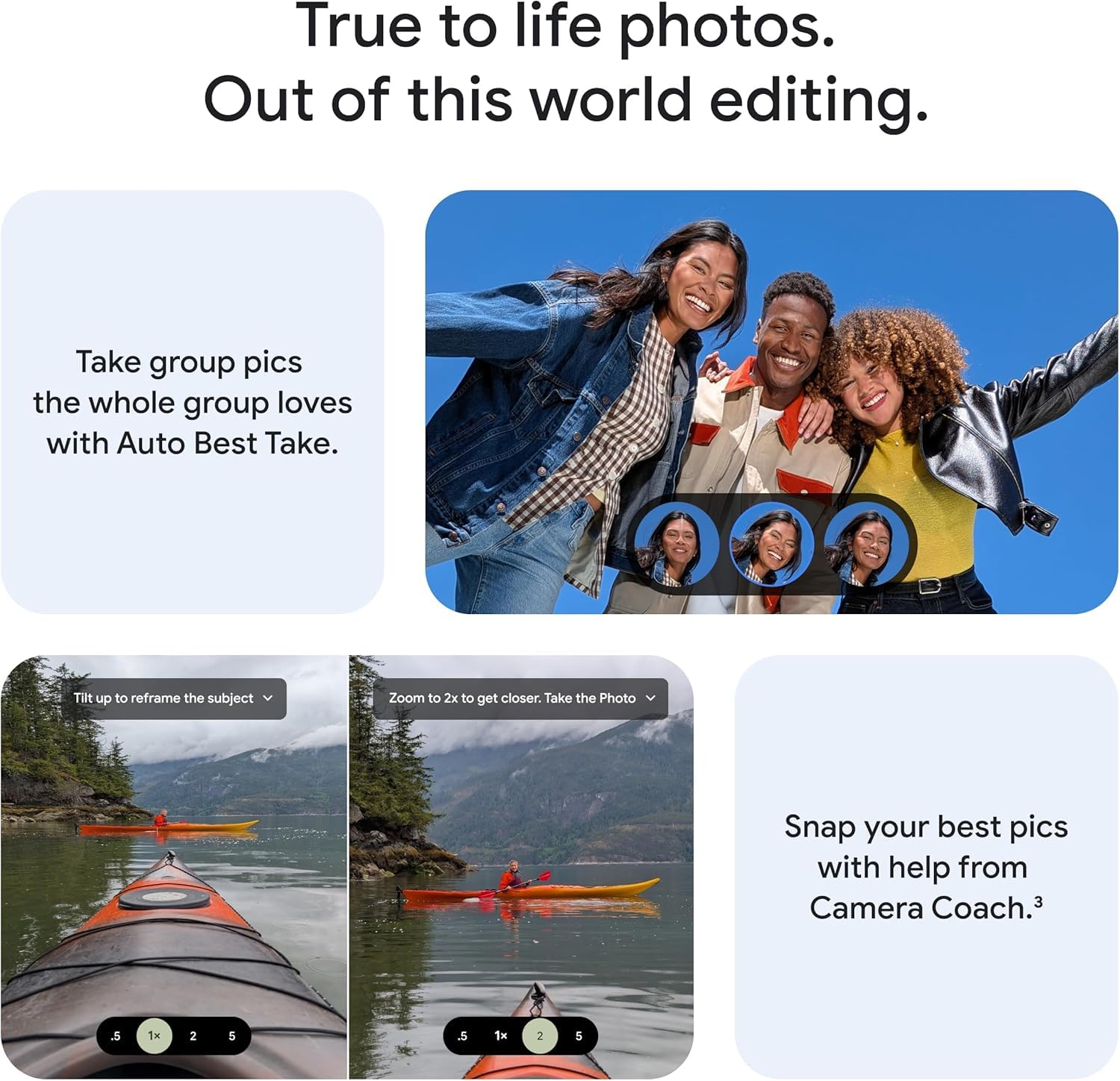 Pixel 10’s 16.002 cm (6.3) Actua display with 3,000-nit peak brightness is sharp and vibrant, with better readability outdoors. And it has a refresh rate up to 120Hz for super smooth scrolling and switching between apps. The Pixel 10 battery can last over 24 hours – up to 100 hours with Extreme Battery Saver – and charge to 55% in about 30 minutes. Plus, it has Pixelsnap magnetic technology for effortless wireless charging that snaps into place.Pixel 10 has an upgraded advanced triple camera system, with a new 5x telephoto lens and Super Res Zoom up to 20x. So it’s easy to capture stunning photos and videos in almost any light, and make complex edits with a few taps.