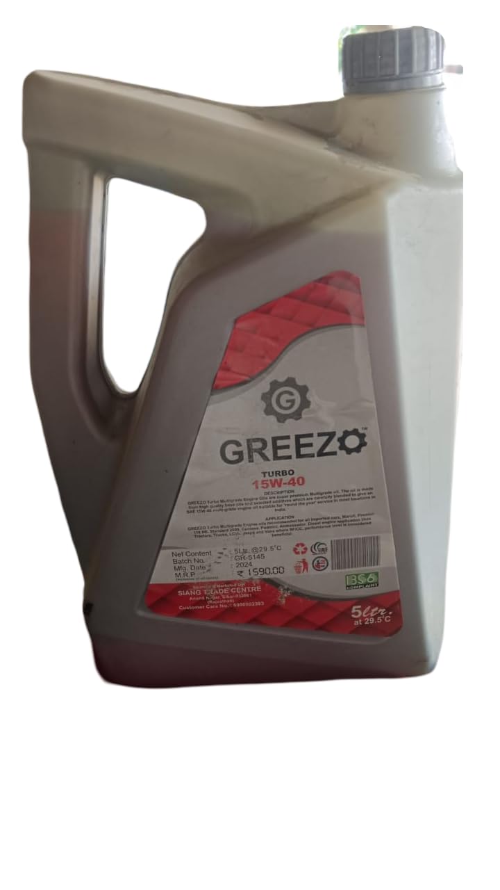 GREEZO Turbo 15W-40 Engine Oil is a multi-grade, heavy-duty engine lubricant designed to deliver consistent protection and performance in commercial and diesel engines. Formulated with advanced base oils and additive technology, it helps reduce engine wear, minimize deposits, and maintain engine cleanliness even under high temperature and pressure conditions. This engine oil supports smoother gear shifts, better fuel efficiency, and long-lasting protection, making it suitable for trucks, tractors, commercial vehicles, and other heavy-duty diesel engines. The 5-litre pack is ideal for regular servicing and workshop use.