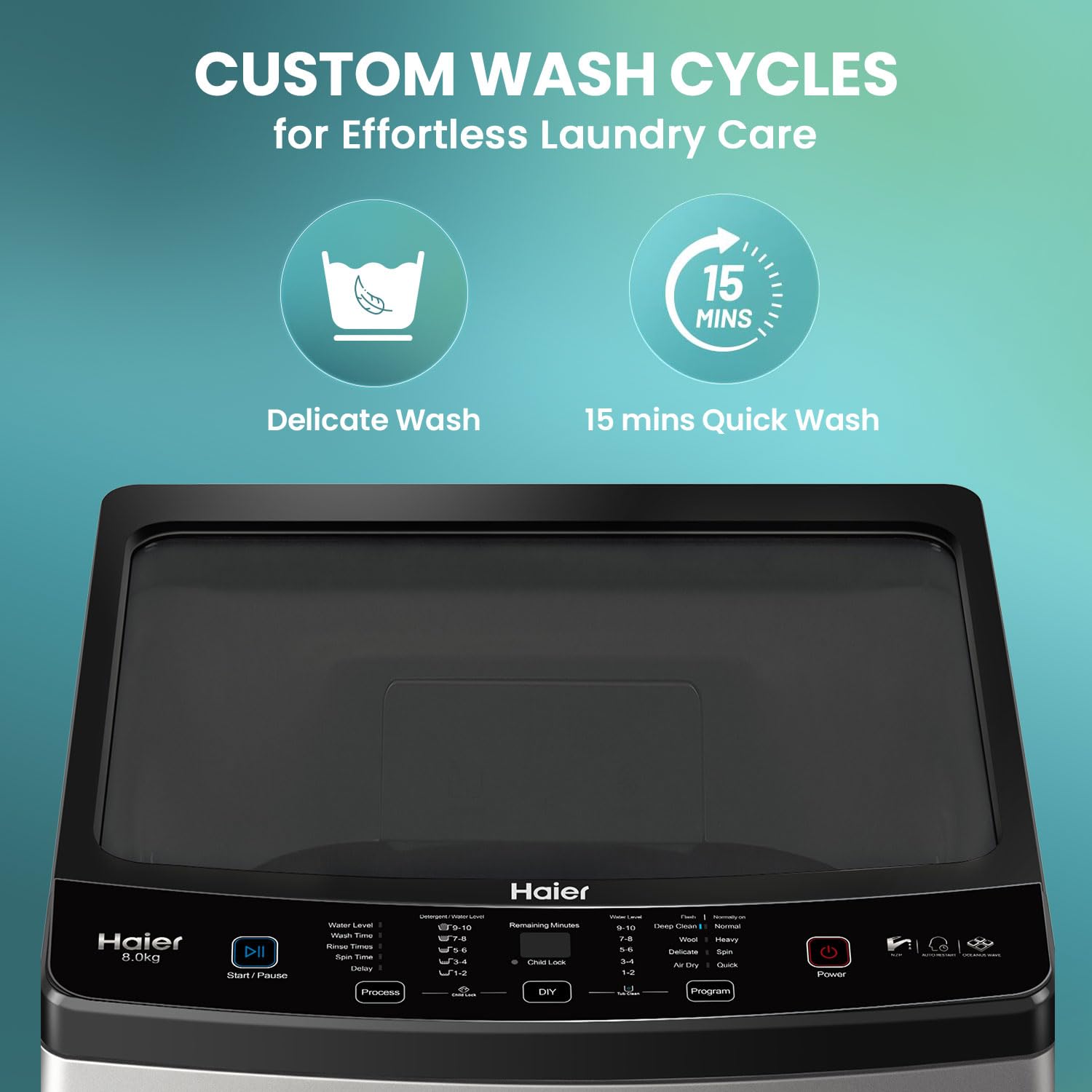 Wash Programs: 8 No.of Programs – “8 Wash programs:- 8 Wash programs:- wash/Rinse/Spin/Tub Dry/Smart/Soak/Delicate/Quick