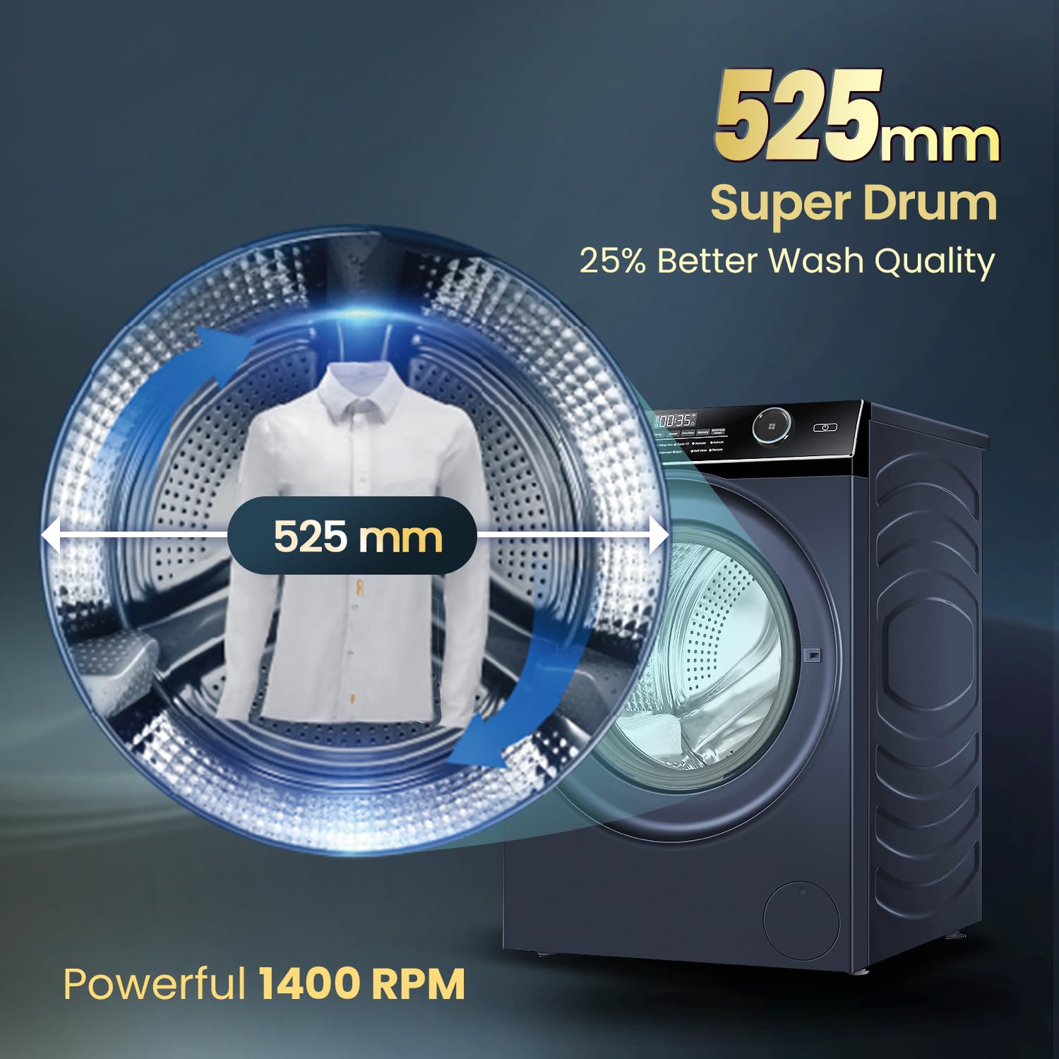 525mm drum offers more space, tangle-free laundry, and 25% better wash quality
