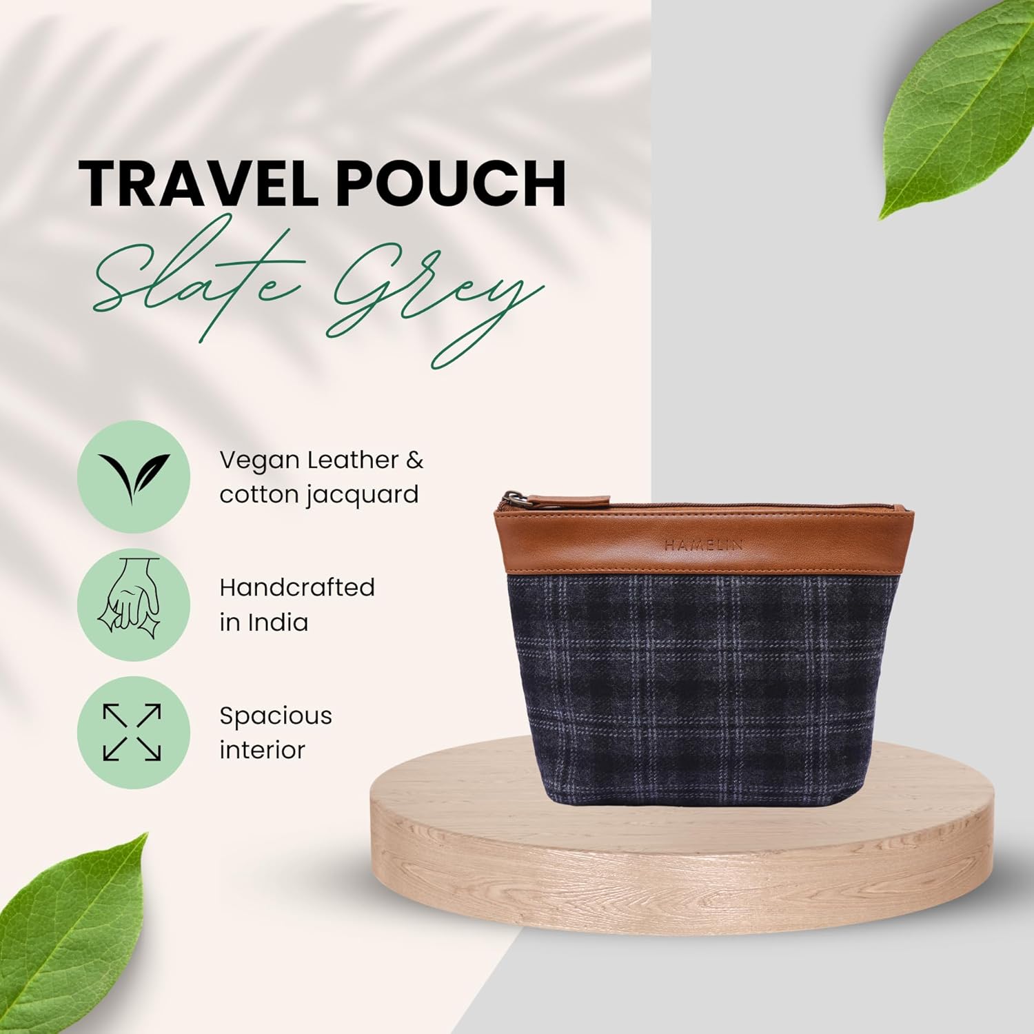 Premium Material: Travel smart and stay organised with Hamelin Makeup Vanity Pouch, that is carefully handcrafted with vegan leather and cotton jacquard.This organizer is not only durable but also adds an elegant touch, making it the perfect pouch for your accessories while on the go.