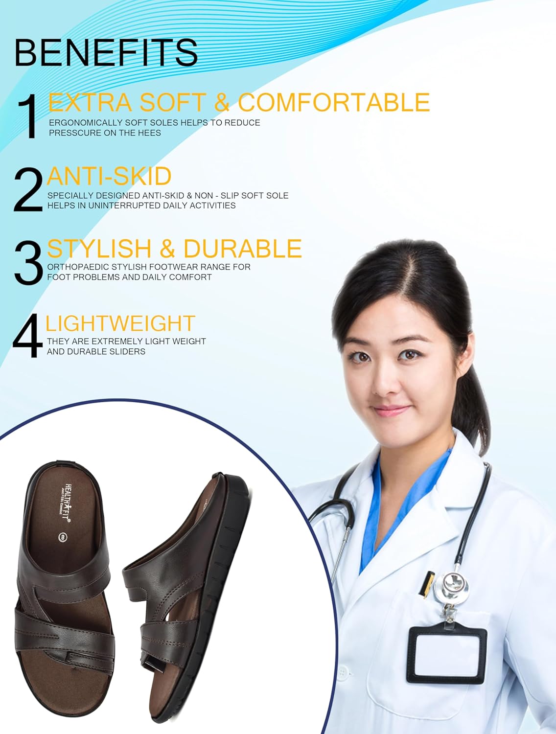 Men who also mostly used by suffering from Leg Pain, Knee Pain, Foot, and Ankle Pain and are also known as Doctor slipper for Men Soft, Relax flip flop for Men, Patient slipper, and Sugar Patient chappal for Men.Health fit footwear due to its flexible material maintains the structure of the bone by providing relief from foot problems.