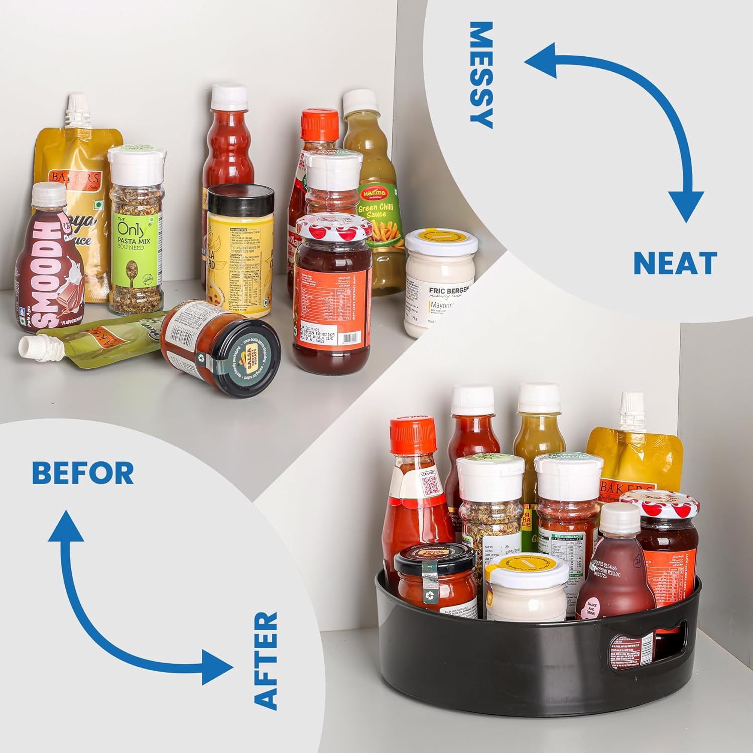360° Smooth Rotation – Effortlessly access spices, sauces, jars, or condiments with this rotating turntable tray, designed for convenience in the kitchen and pantry.