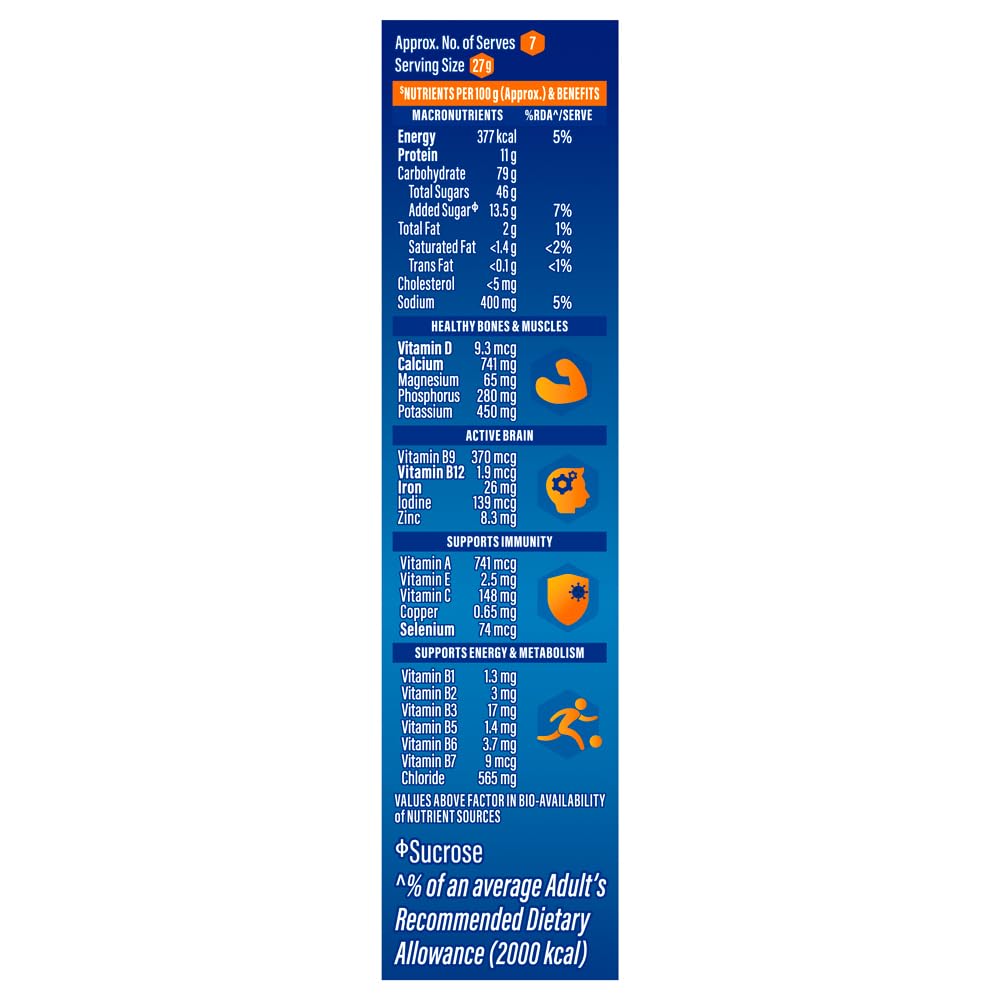 Horlicks is a Health Drink that has nutrients to support immunity Horlicks is clinically proven to improve 5 signs of growth and is clinically proven to make kids taller|| stronger and sharper. Horlicks is scientifically proven to improve power of milk Horlicks is now available in 4 exciting and yummy flavors – Classic malt|| Chocolate|| Elaichi|| Kesar Badam Enjoy with a cup of hot milk or a glass of cold milk Horlicks is a leading force in the ‘Science of Food’ Horlicks has Bio-Available Nutrients* meaning – Nutrients* More Available for Growth. These get absorbed in the blood and are carried to all parts of the body Horlicks contains 9 nutrients (Vit B6|| B12|| C|| D|| Copper|| Folic Acid|| Iron|| Selenium and Zinc) which are scientifically proven to support immunity Increases the density of minerals such as^ calcium in bones to give children bigger and stronger bones Horlicks is clinically proven to increase^ lean tissue|| making children “stronger” Helps improve attention and concentration^ to make your child sharper Horlicks is clinically proven for more^ haemopoietic nutrients in the blood “Healthier Blood” refers to improvement in the levels of blood health related nutrients (Vitamin A & Folate) in circulation Horlicks is clinically proven to increase^ fat-free mass|| making child stronger*OLD