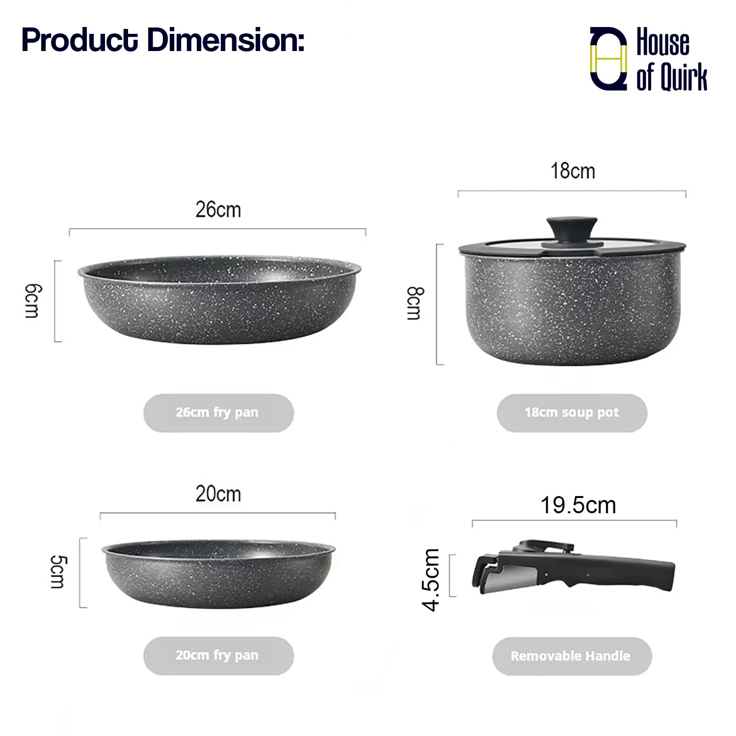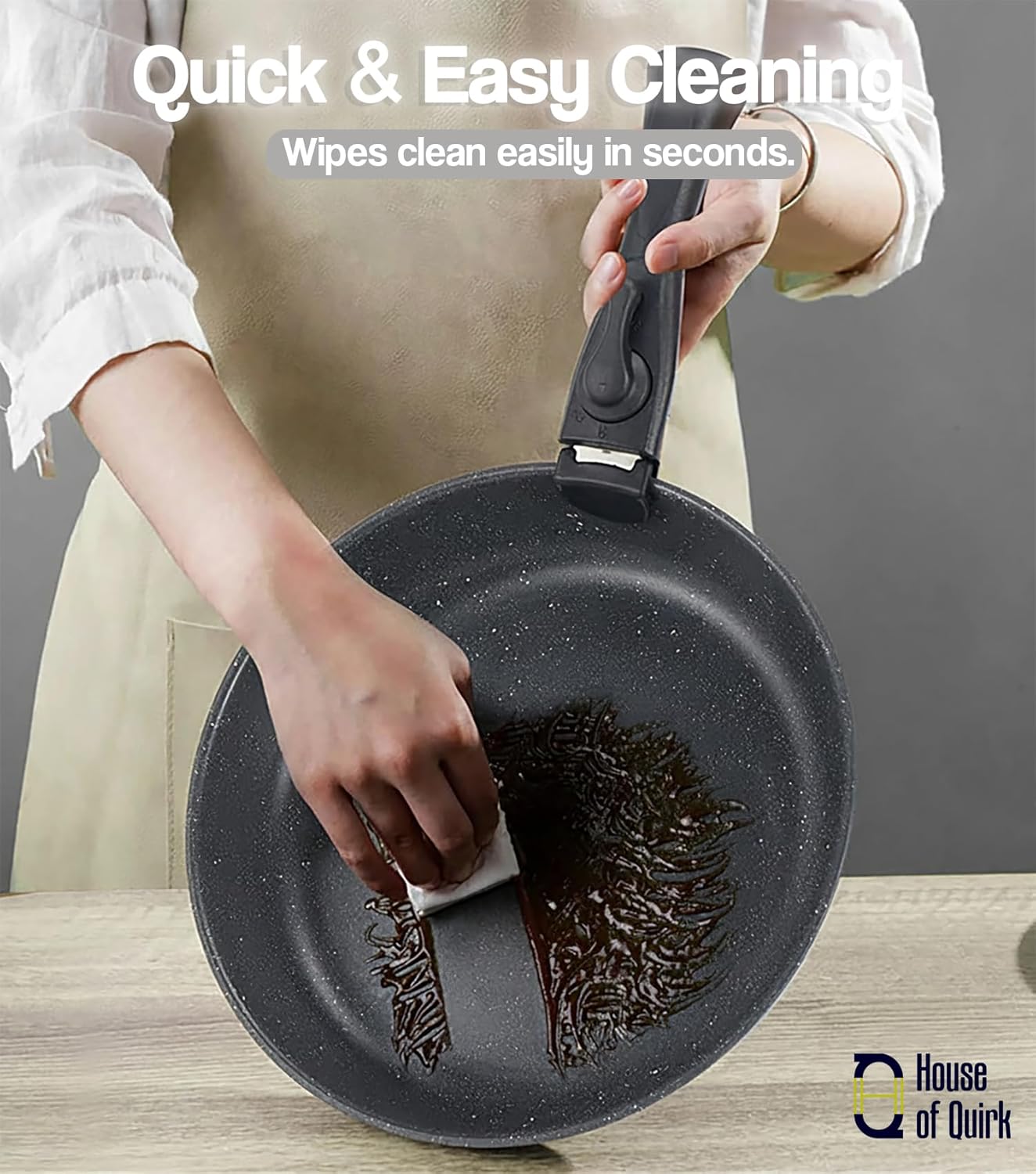 Detachable Quick-Lock Handle: One-click system lets you attach/detach the handle for cooking, serving, baking & storage.