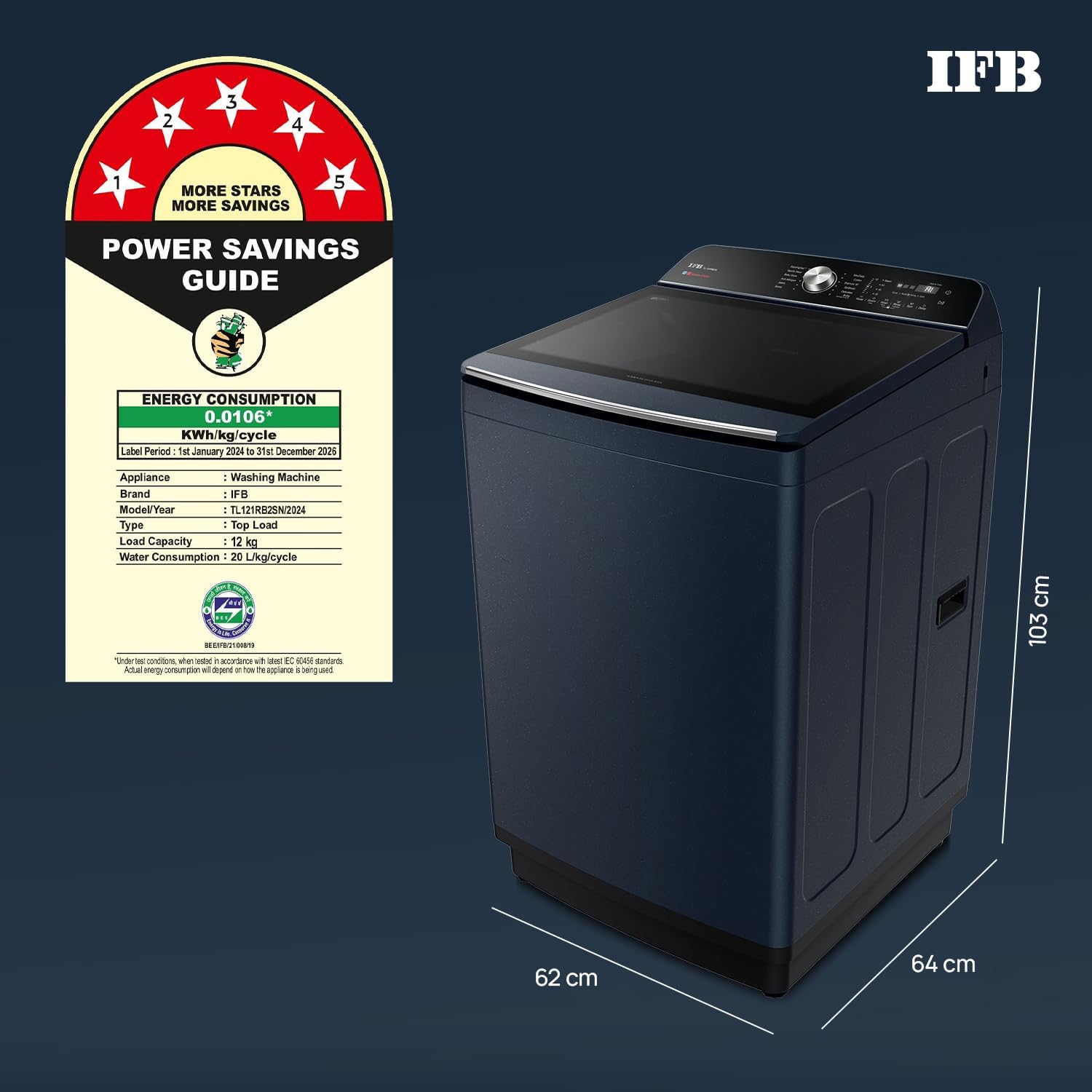 Fully-Automatic AI-Powered Top Load Washing Machine: This 12 kg fully-automatic top-load washing machine is designed for superior cleaning performance. Perfect for large families or households with frequent laundry needs, it combines advanced AI technology and compact design to deliver powerful and water-efficient performance