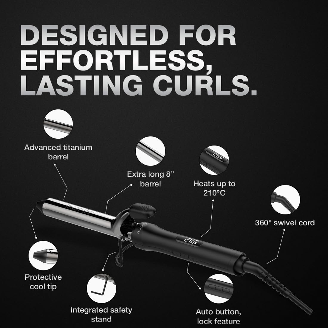 Advanced Titanium Barrel: Distributes heat evenly and quickly for consistent curls while reducing frizz and static, ensuring a smooth, shiny finish.