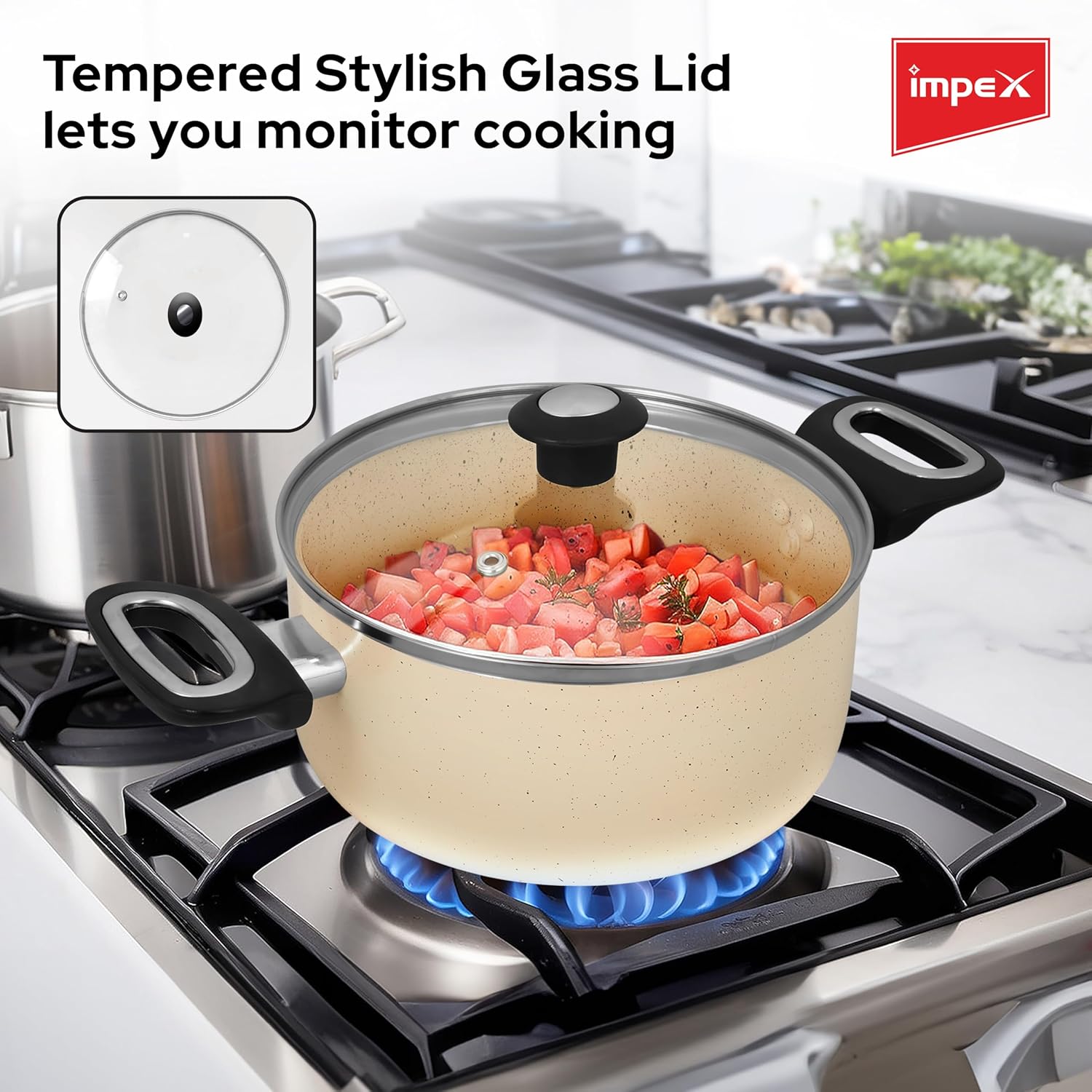 Discover the perfect blend of style and functionality with the Impex 8-Piece Aluminium Nonstick Cookware Set. Designed for modern kitchens, this set ensures efficient cooking and adds elegance to your culinary space