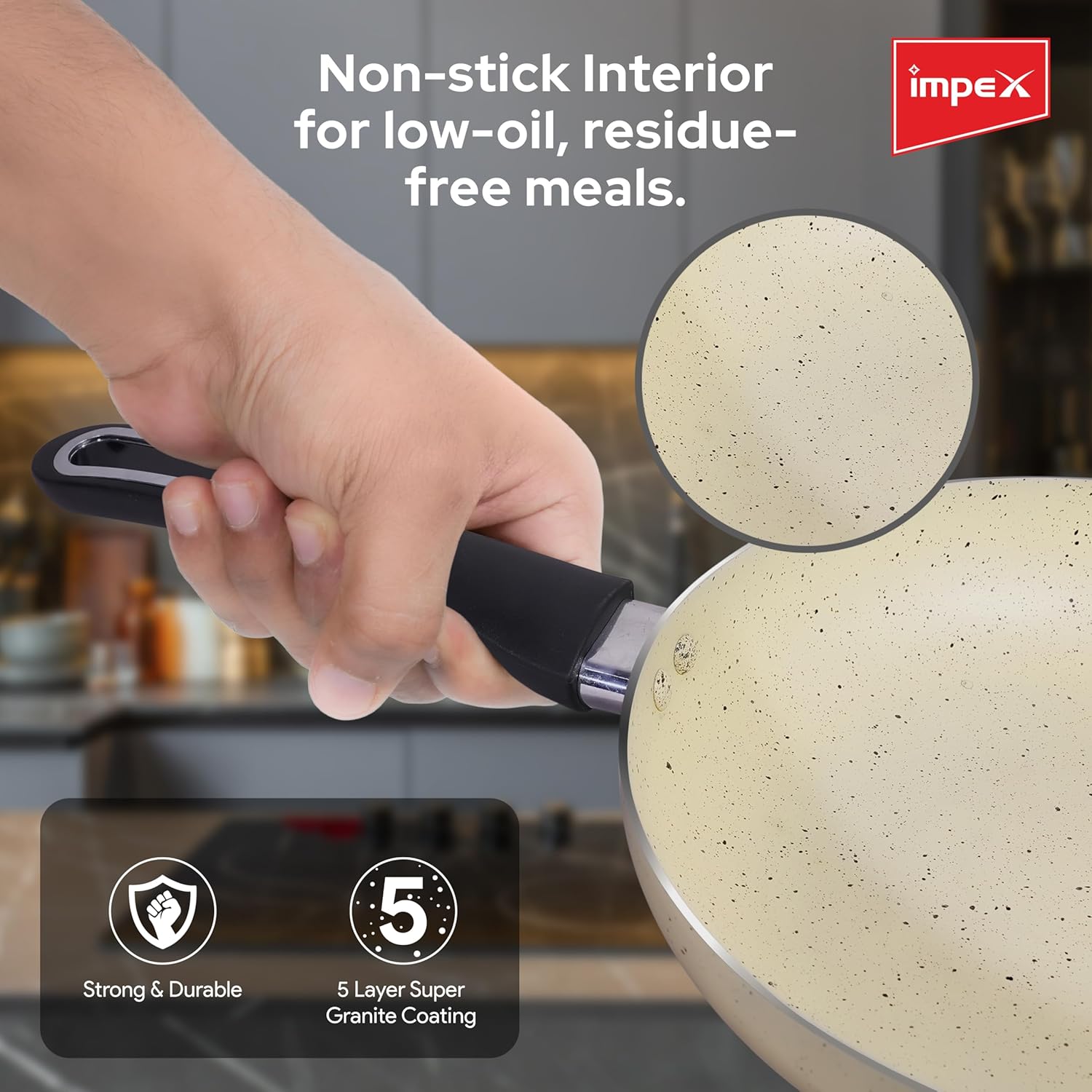 5 Layer Super Granite Coating: Ensures exceptional non-stick performance for easy cooking and cleaning.