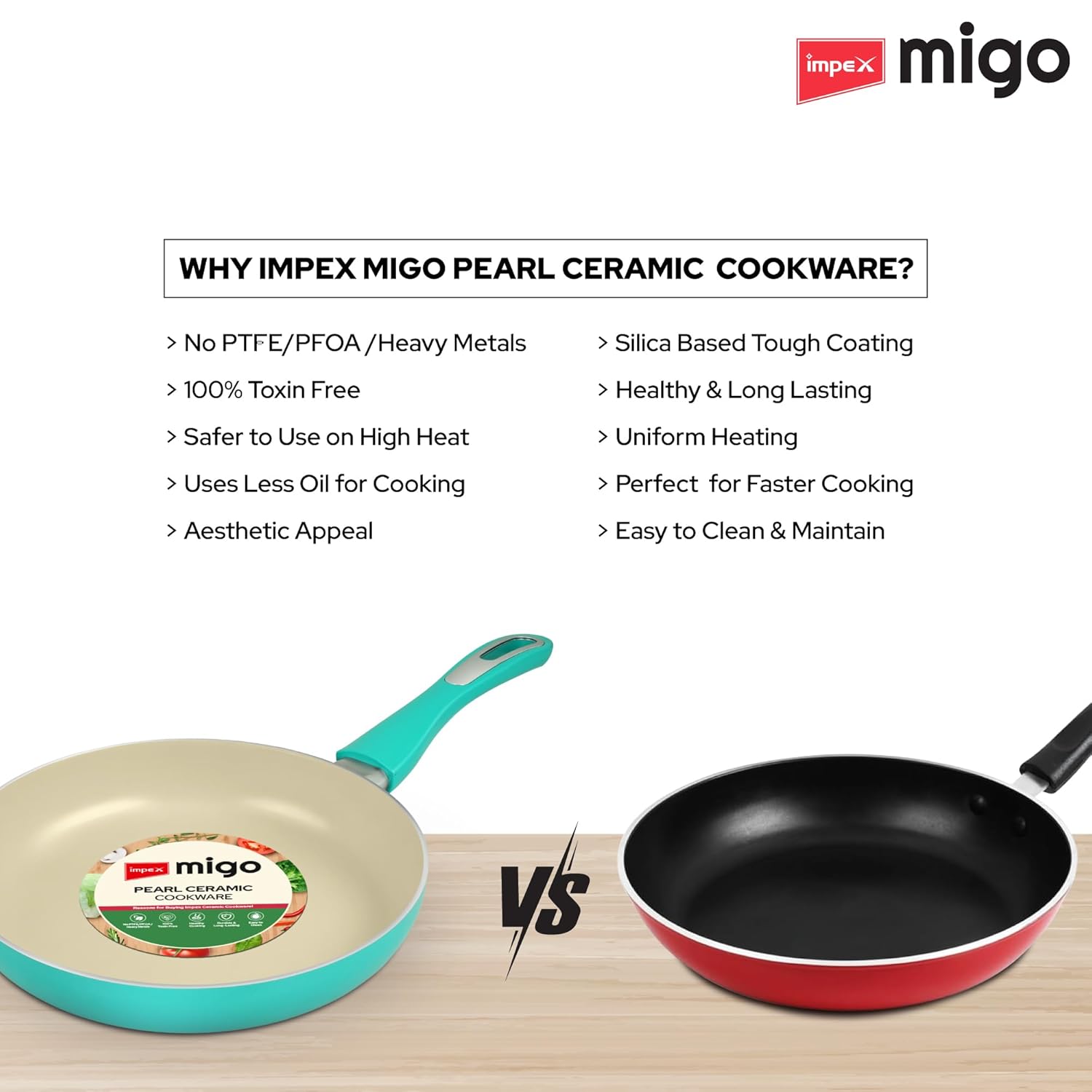 HEALTHY COOKING: Free from PTFE, PFOA and heavy metals, backed by 2-year warranty for lasting performance