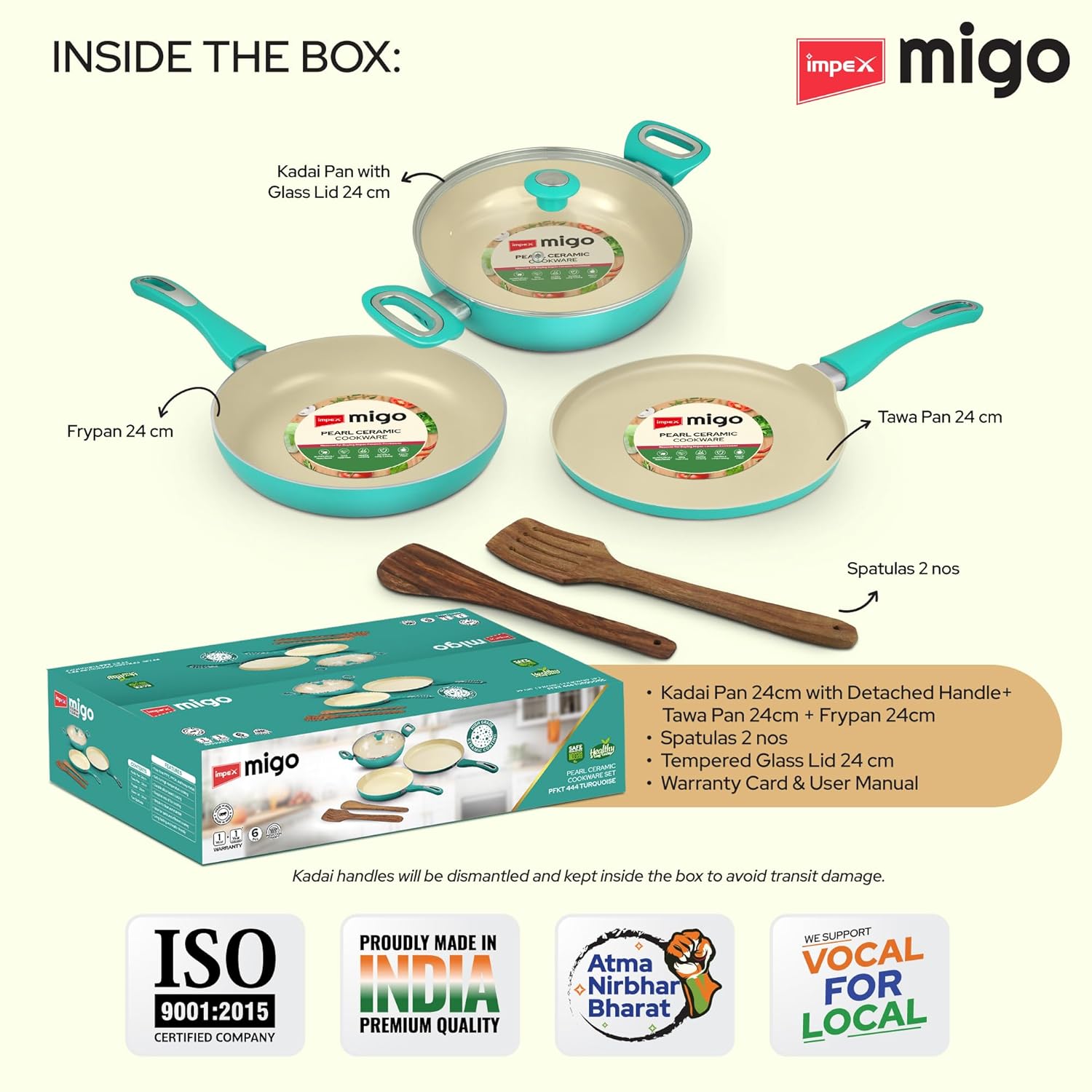 COMPLETE SET: 6-piece cookware set includes Kadai with lid, fry pan, tawa pan and 2 spatulas for versatile cooking needs