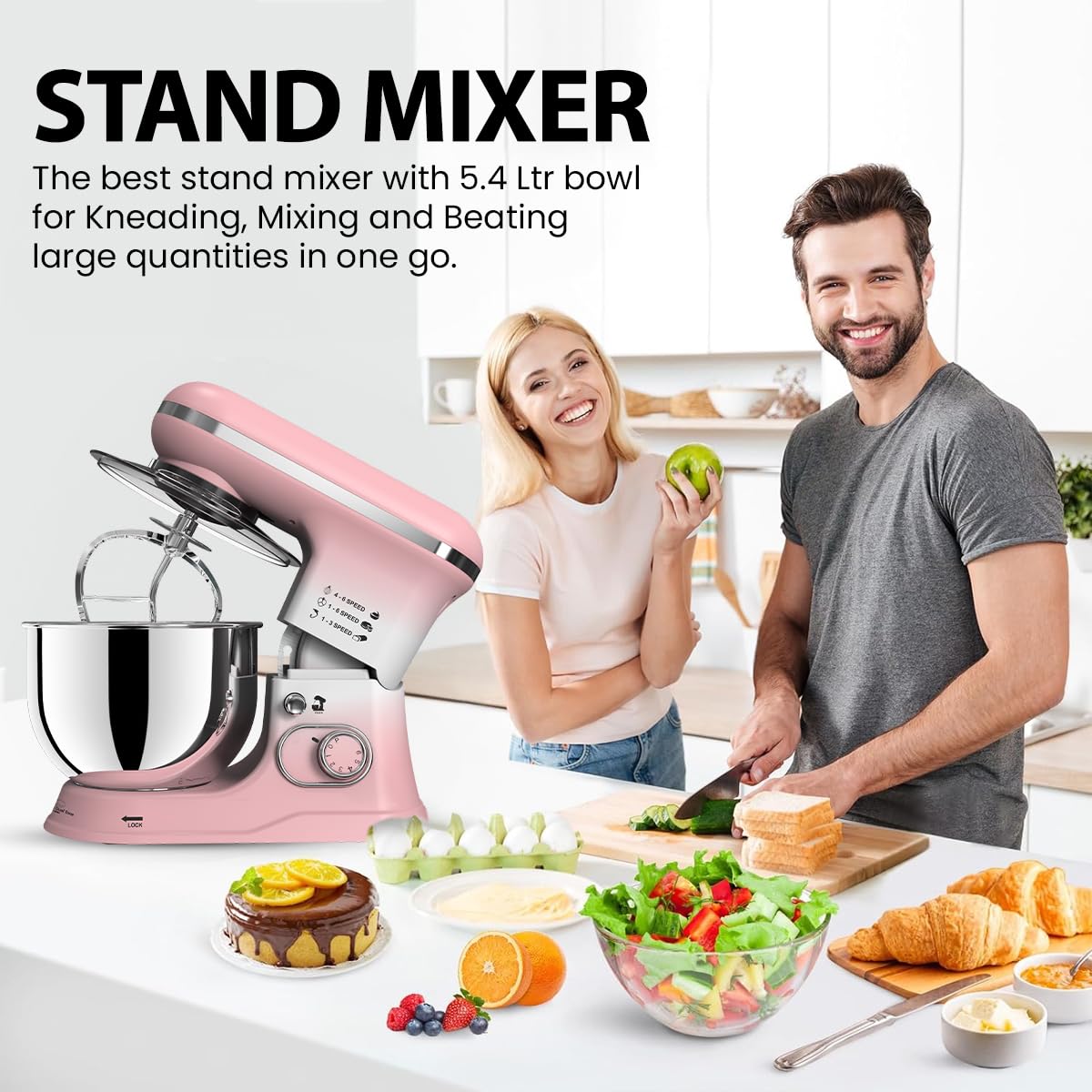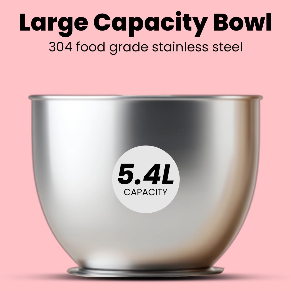Large 5.4L Stainless Steel Bowl: Ample capacity for preparing dough, batter, and mixes for the whole family. Built with SS304 food-grade material for durability and hygiene.