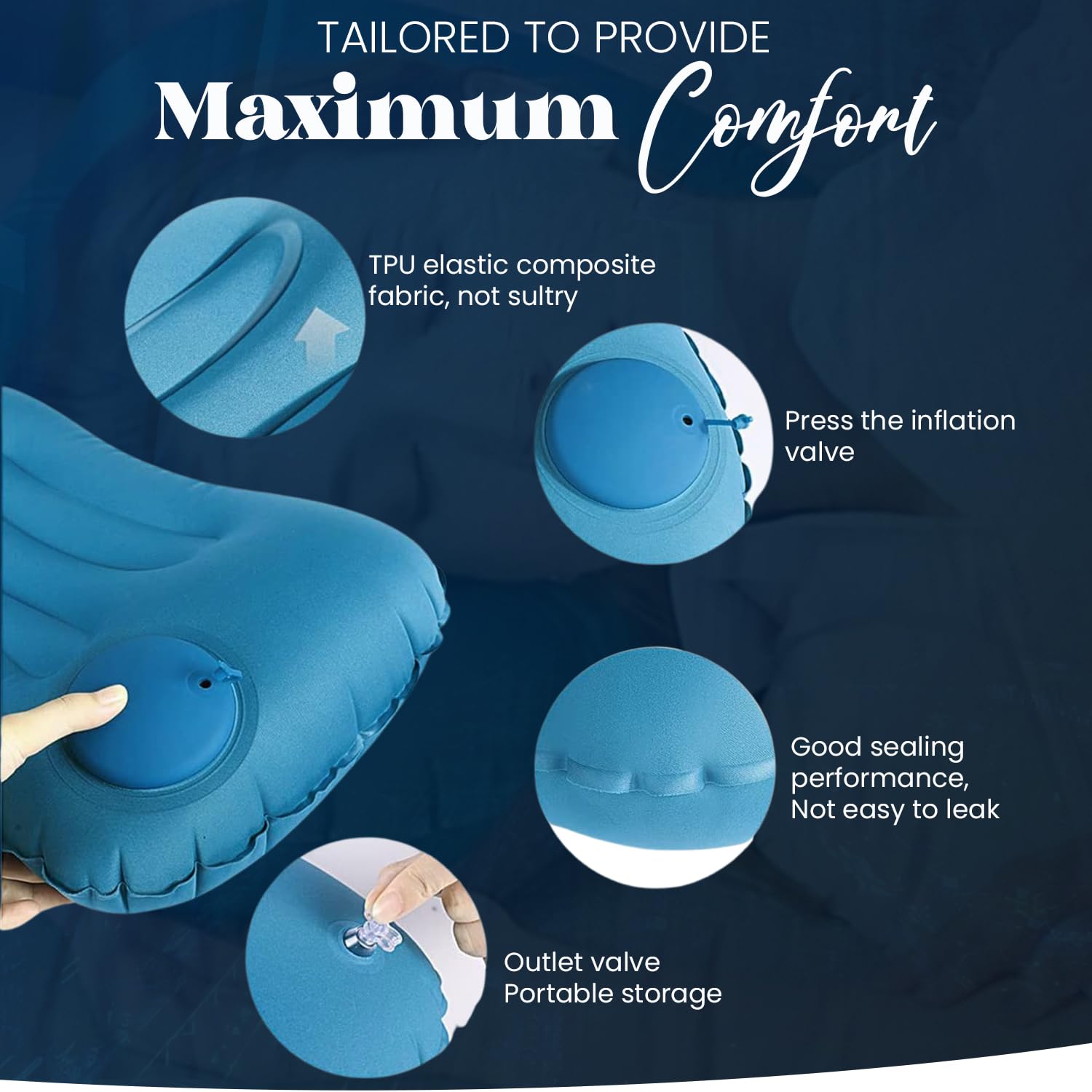 Ultralight & Compact: Designed for travelers and outdoor enthusiasts, our inflatable travel pillow is incredibly lightweight, making it a hassle-free addition to your gear.