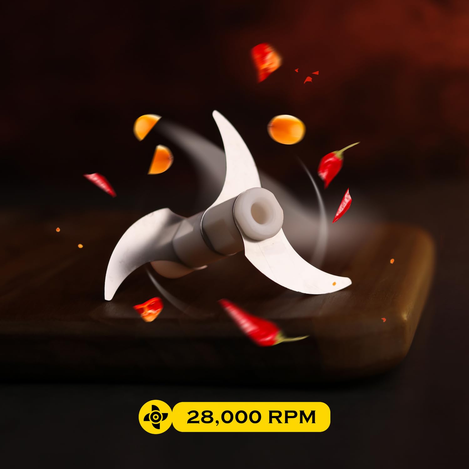 🔌USB Type-C Charging: Recharge your chopper quickly with USB-C, using the same cable as your other devices. This feature offers hassle-free power-up, reducing clutter and making it easier to keep your chopper ready for use anytime.