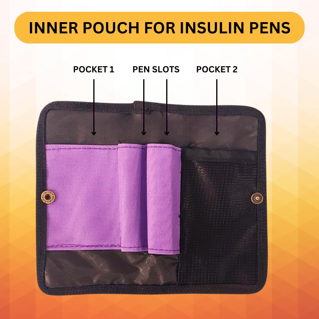 Dedicated Slots for Insulin Pens, Vials, and other MedicationsVery Handy Removable Pouch Keeps Everything ManagedUse it every day to Keep Your Medication SortedDedicated Slots for Ice Gel PacksPlease use 2 Ice Gel Packs at a time with the Insulin Cooler Bag