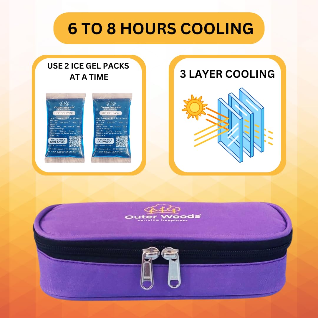 Carry your medication Safely Wherever You GoThermal Insulation Keeps the Insulin and Medications Cool for 6 to 8 HoursGet 2 + 4 Units of Ice Gel Packs Please use 2 Ice Gel Packs at a time with the Insulin Cooler BagDedicated Slots for Insulin, Vials, Medication, and Ice Gel Packs360 Degree Thermal Insulation Ensures Long Hours of CoolingIce Gel Packs Help to Increase the Cooling DurationEasy to Carry Compact DesignRemovable Inner Pouch for Ease of Access and Daily UseMade in India with Perfection