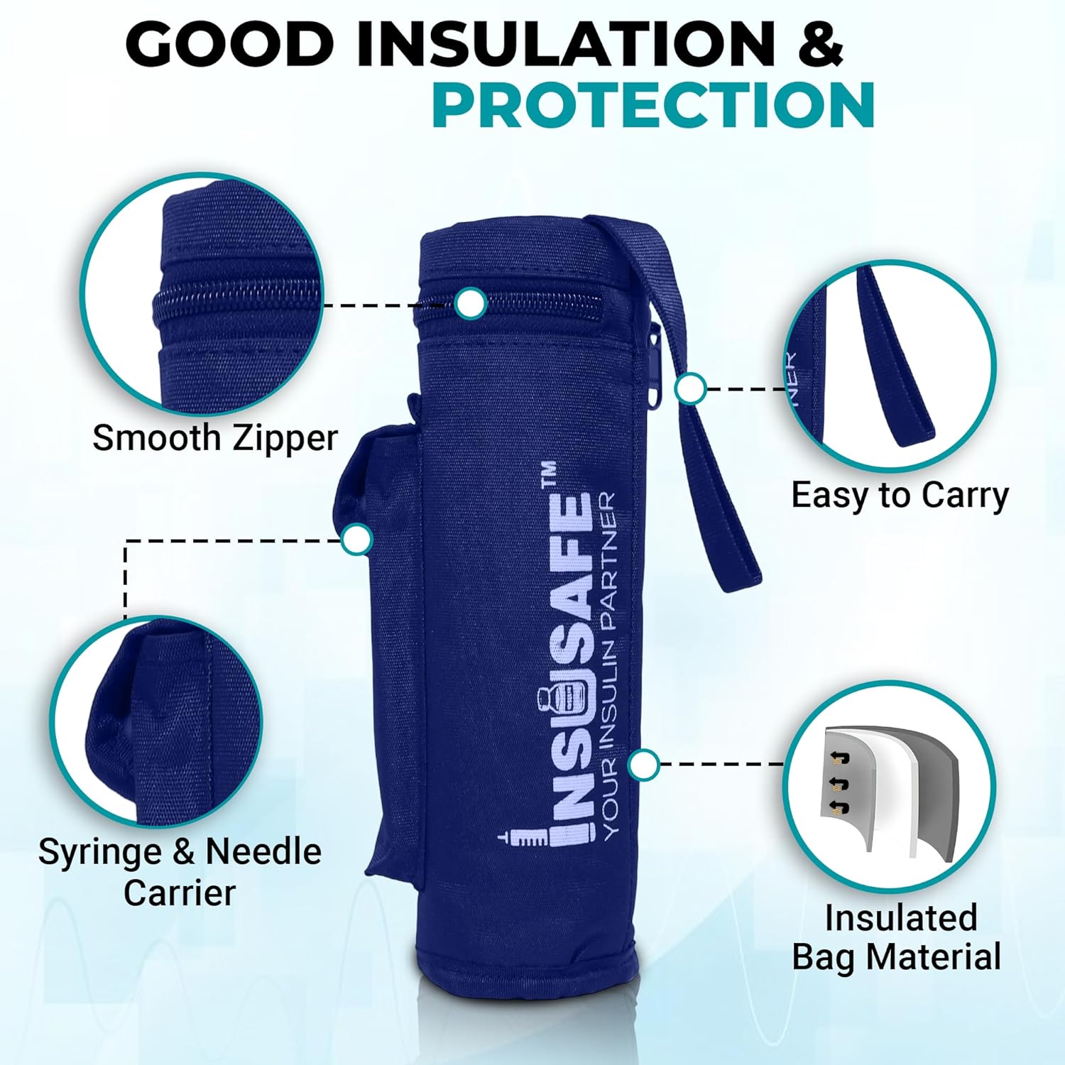 Patented Insusafe Ice Pack Design:** Exclusive to Insusafe products, our ice packs are uniquely shaped and engineered for optimal efficiency and durability.
