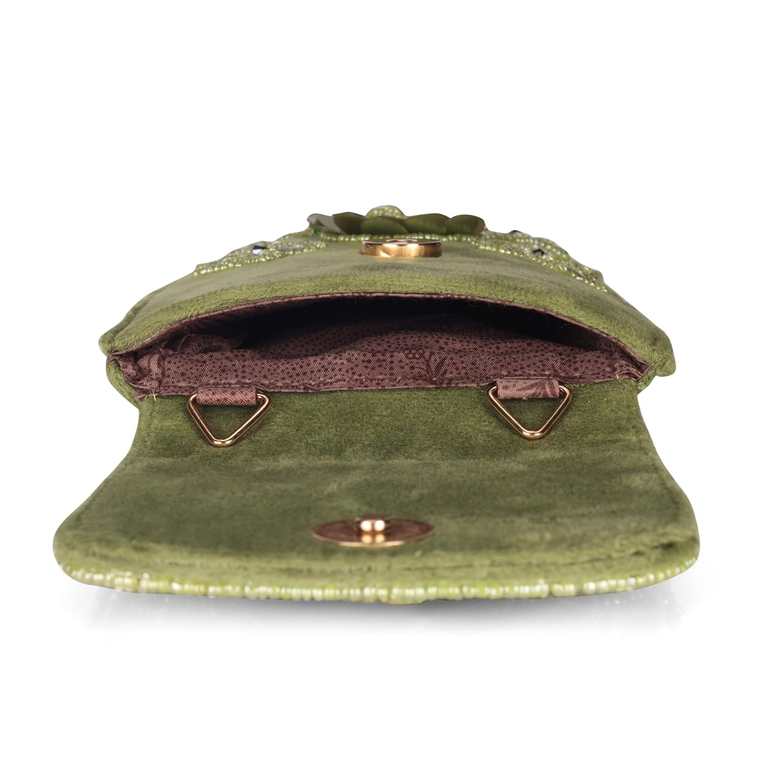 Elevate your style with this elegant black velvet sling bag, designed to make a statement at every occasion. The bag features exquisite floral embellishments crafted with intricate beadwork and sequins, adding a touch of glamour and sophistication. Its soft velvet texture enhances its luxurious appeal, while the golden chain strap offers both durability and a chic finish. Perfect for parties, weddings, and evening outings, this versatile sling bag is compact yet spacious enough to hold your essentials like a phone, cards, cash, and keys. The secure flap closure ensures safety, while the lightweight design makes it easy to carry throughout the day or night. Whether paired with traditional outfits or modern ensembles, this bag is the ideal accessory to complete your look with elegance and grace.