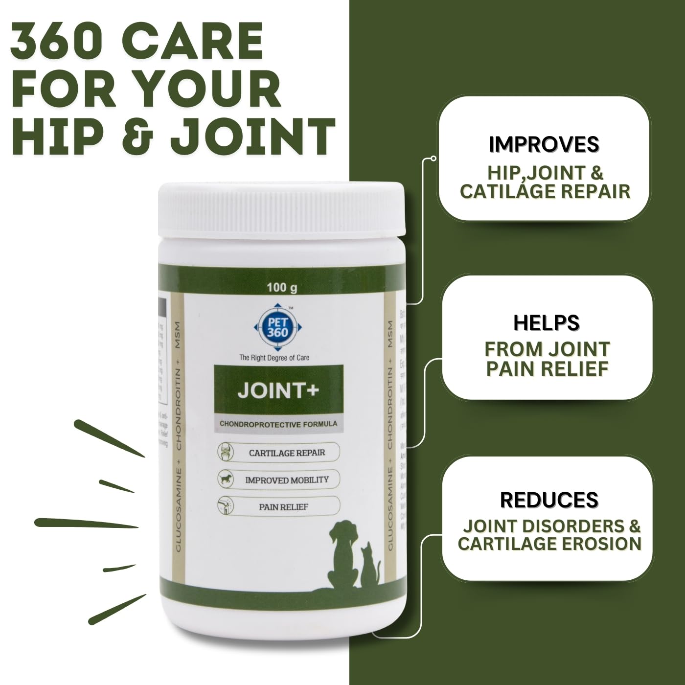 LONGER HEALTH BENEFITS: PET360 JOINT+ is a ideal choice among pet supplements. It is specially formulated to provide long-lasting joint health benefits, making it a trusted addition to your pet’s daily health regimen. Ensure your furry friend receives the finest care with this advanced joint supplement.