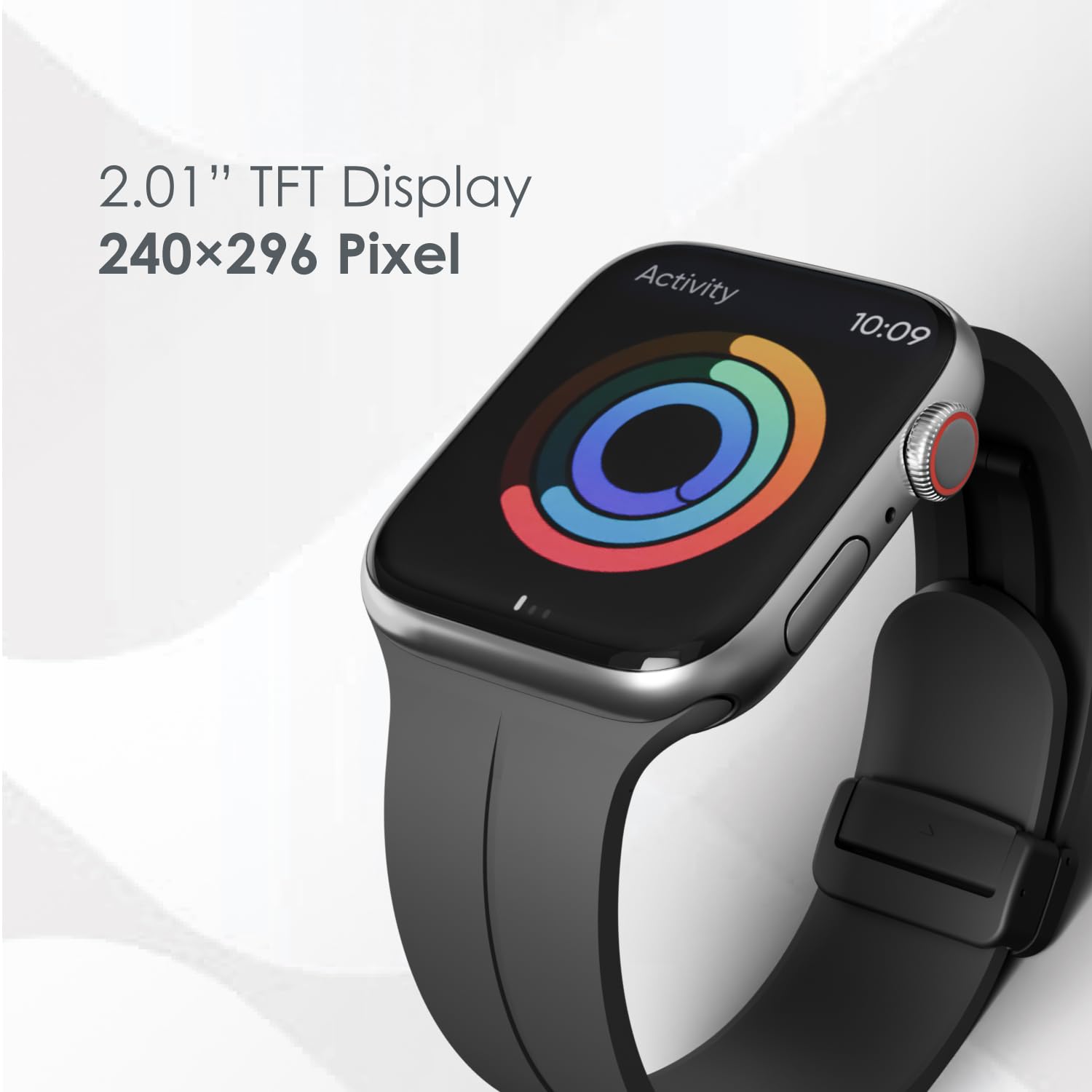 JUST CORSECA Skywatch PRO Smartwatch with 2.01″ TFT Display, Bluetooth 5.4 | Heart Rate & Activity Tracker, 7–10 Day Battery | Magnetic Charging, Hryfine App Support – Black