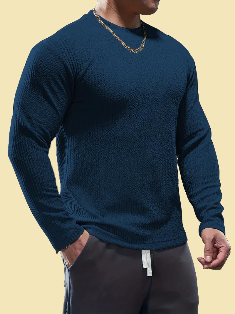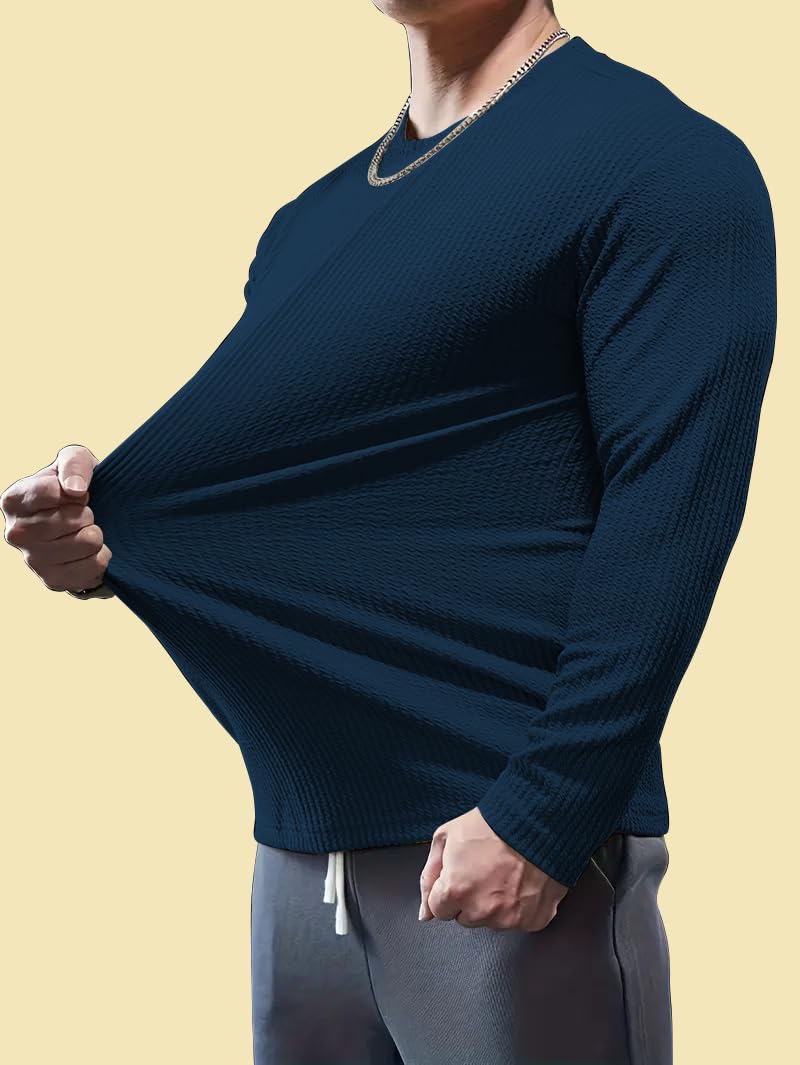Make a bold style statement with this distinctive men’s round neck t-shirt featuring a striking vertical stripe pattern with a unique waffle texture. The sophisticated design combines classic stripes with contemporary texture, creating visual depth and interest. The relaxed fit and short sleeves offer excellent comfort for everyday wear, while the round neckline provides a timeless finish. Crafted with attention to detail, the textured waffle pattern adds a premium touch to the fabric, making it stand out from ordinary t-shirts. The versatile brown and black colour scheme makes it easy to pair with various bottoms, from casual trousers to jeans. Perfect for casual outings, weekend wear, or styled-down office days, this t-shirt seamlessly blends comfort with modern fashion sensibilities. The balanced proportions and clean silhouette ensure a flattering fit for various body types. Style it with black trousers for a coordinated look, or mix it with different colours to create your unique ensemble.