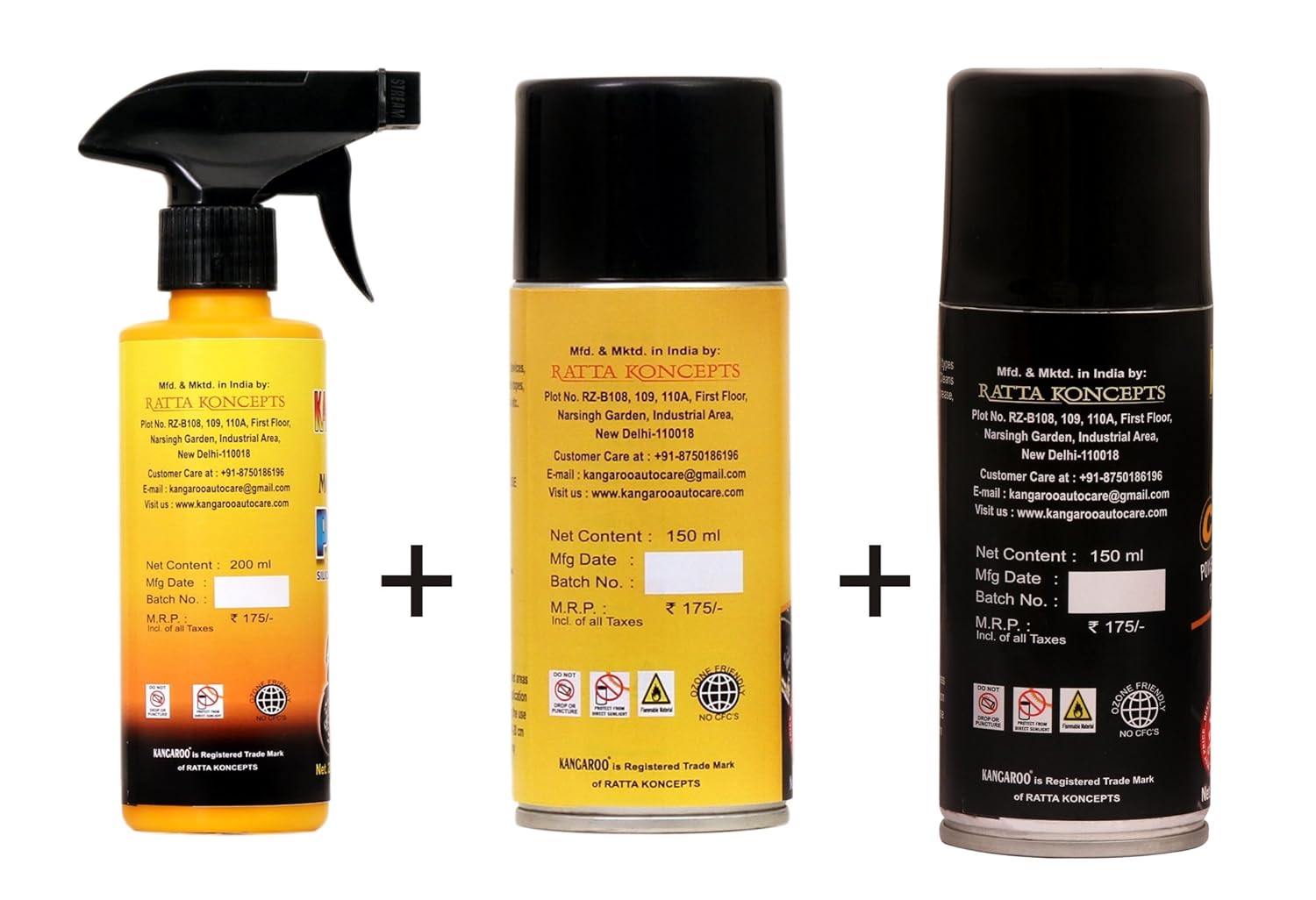 Kangaroo® Motorbike Spray 200ml, Chain Lubricant Spray and Cleaner (150ml Each)
