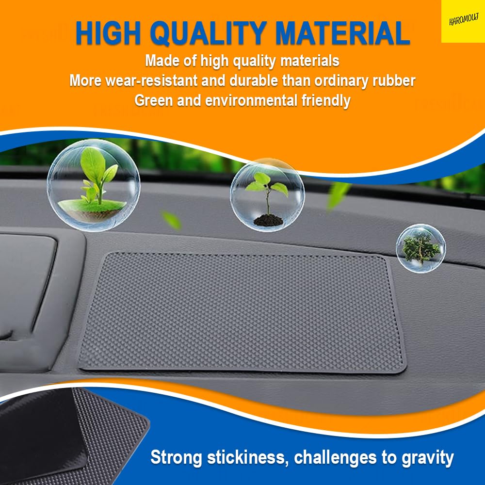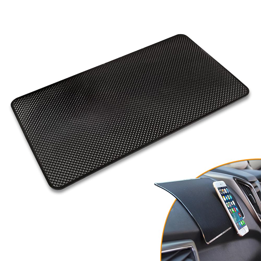 ANTI SLIP MAT: This dashboard anti-slip mat comes with super sticky and can be firmly attached to your dashboard. Even on the bumpiest roads it will hold your gadgets firmly, such as sunglasses, cell phones, perfume, business cards, etc. You no longer have to worry about dropping small items while driving.