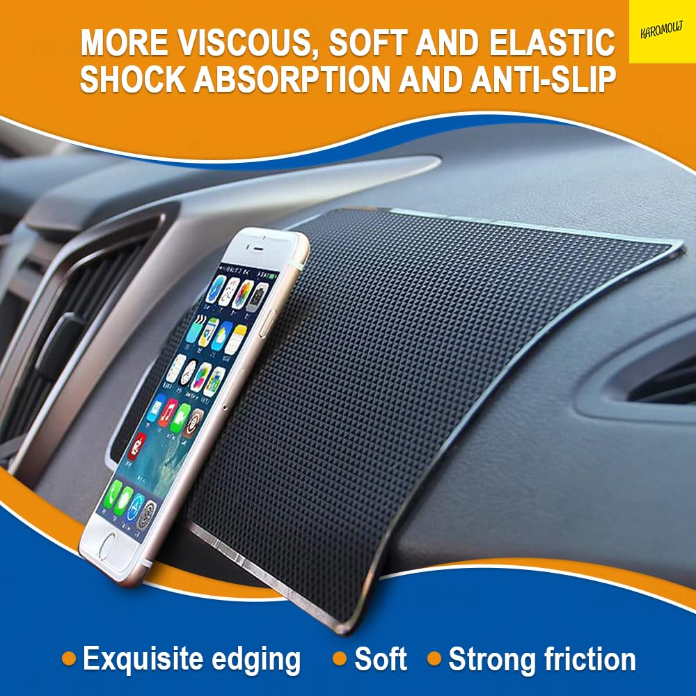 Karomouj KMA284 Car Dashboard Anti Slip Car Pad Non Slip Dashboard Mat Anti Skid Grip Mount for All Smartphone, Keychain (Black, Pack of 1) (Small – 27x 14 x 0.1 cm) | Rubber
