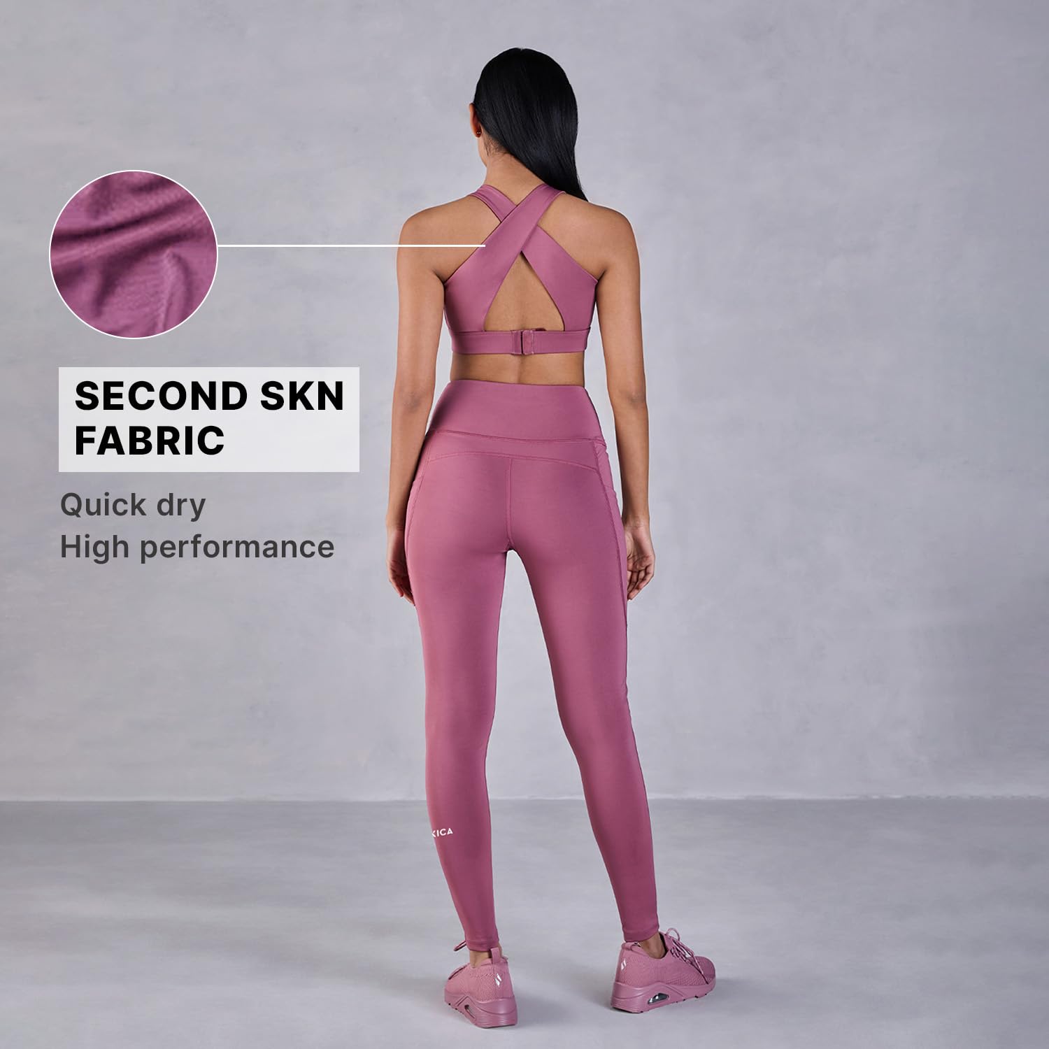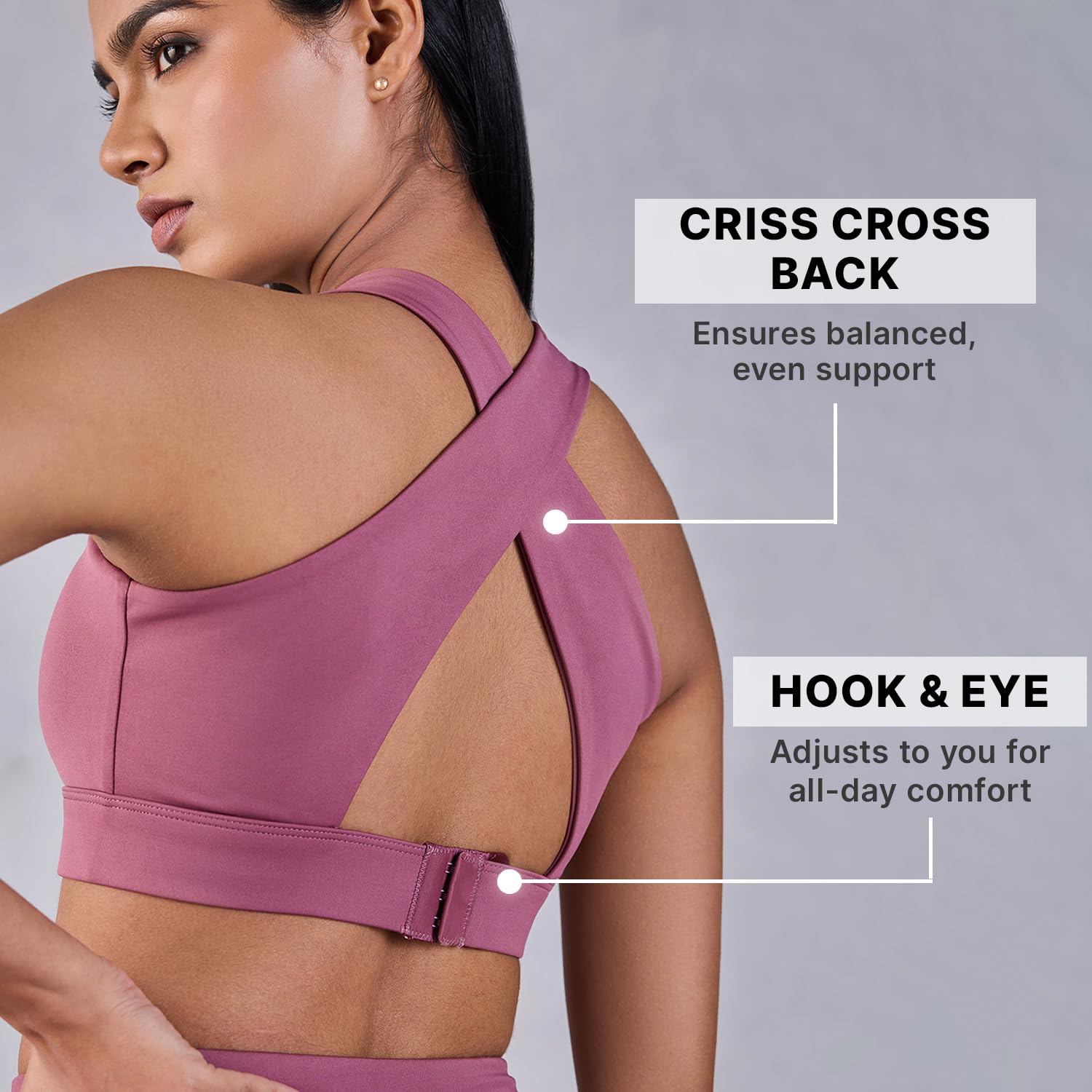 Loved by lakhs of women and technically designed in our popular Second SKN fabric, the viral Crostini Sports Bra is a must-have for all your fitness needs. The fabric is stretchable, breathable, and quick-drying, so sweat stress-free in our Second SKN range. -From gymming and running to dance and yoga flow, the Crostini Sports Bra offers maximum support to keep your chicas secure. -The sexy cross-design back eases pressure off your shoulders while offering maximum support. -It is full coverage and high neck, so don’t worry about visible cleavage and side boob spillage. It strikes the perfect balance between sexy and modest. -Adjustable bands with hooks ensure easy removal after a high sweat session. -Removable cups that cater to your preference. If you’re someone who prefers putting their cups in, worry not. -Crostini has stitched panels that prevent the cups from moving while you work out or bunching up together in the wash. Try Crostini for your high-intensity activities. Fabric Details: Polyester Elastane (88% Polyester, 12% Spandex)