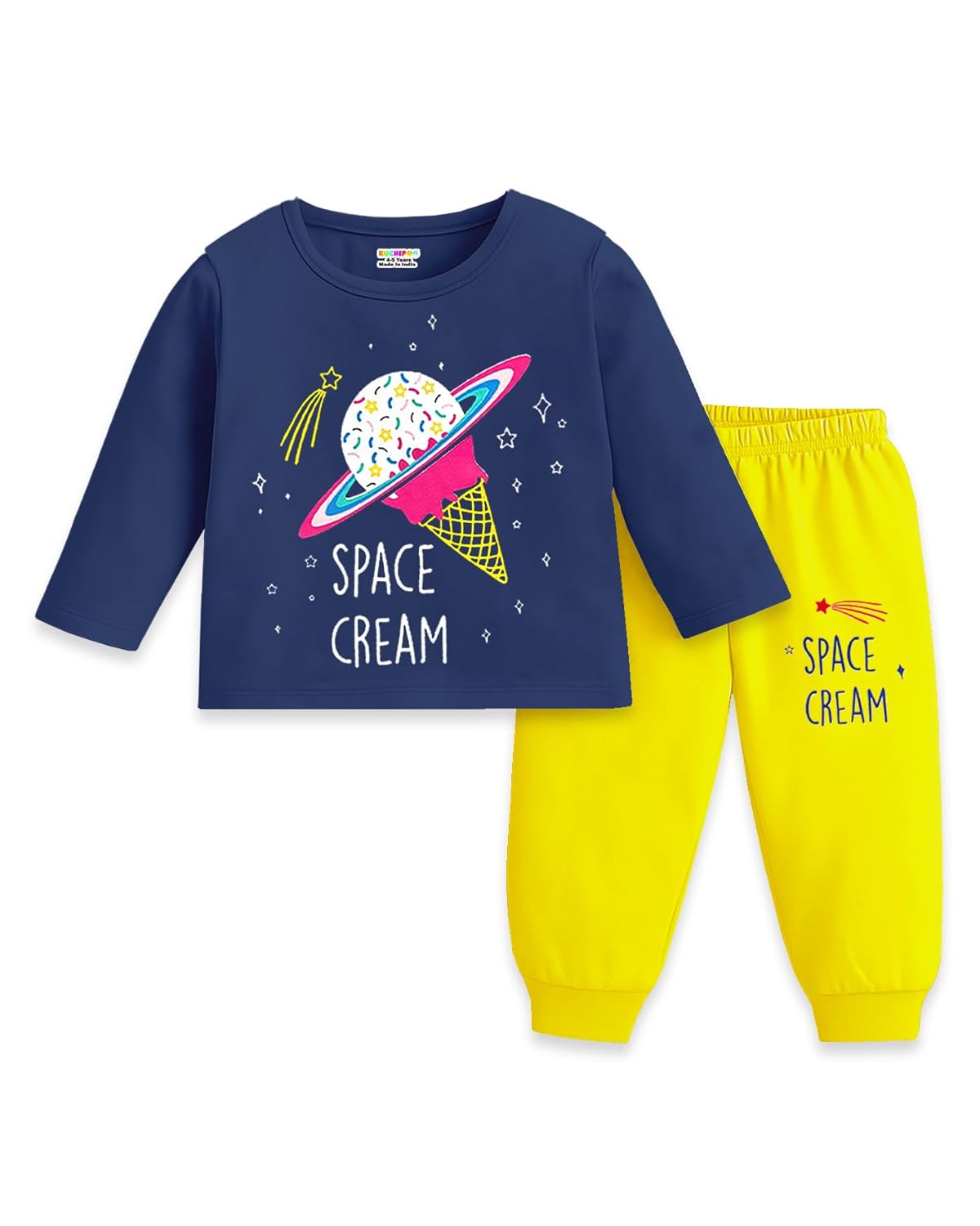 Kuchipoo Girls Regular Fit Cotton T-Shirts and Pyjamas Clothing Set-Pack of 3