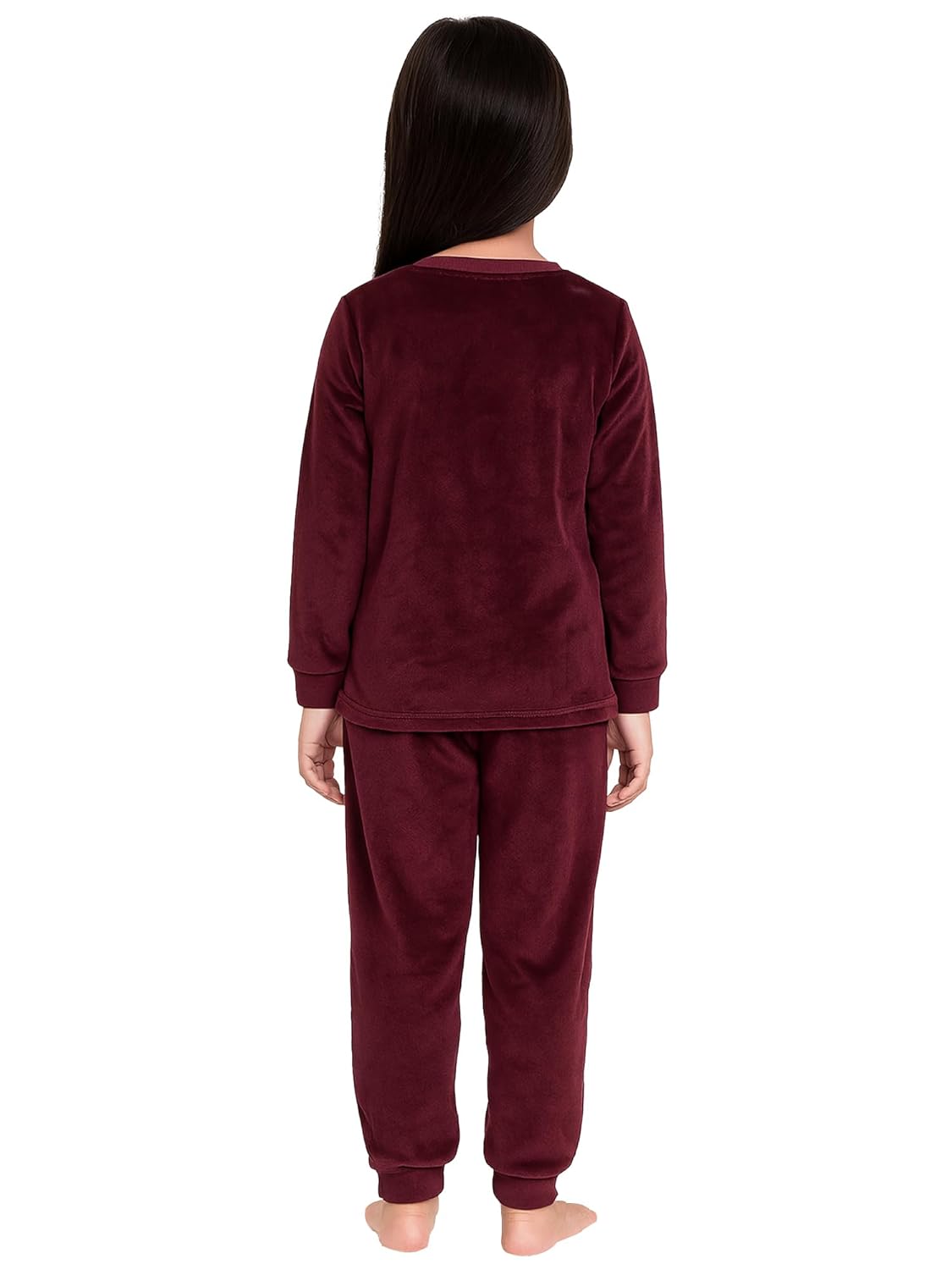 Kuchipoo Girls Velvet Night Suit Set | Full Sleeve Winter Pajama Set with Cute Unicorn Design| Warm & Soft Winterwear for Girls