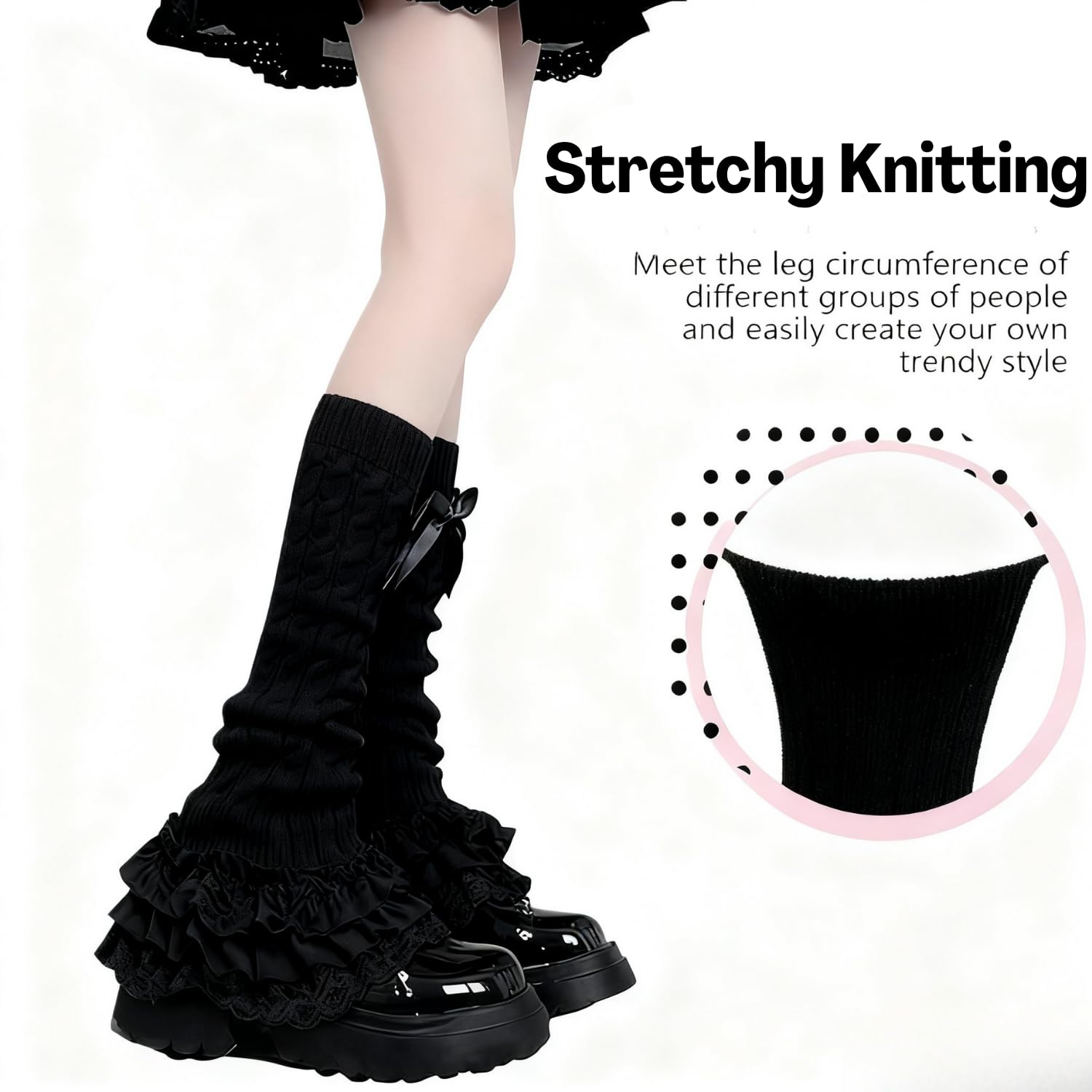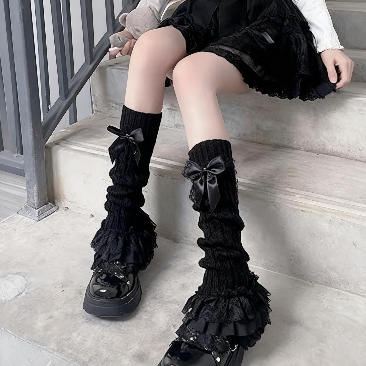 - Y2K Aesthetic Essence: Embrace the vibrant Y2K aesthetic clothes trend. These warmers feature a trendy black multi-layer lace design adorned with a delicate bow, capturing the perfect blend of retro and cute.