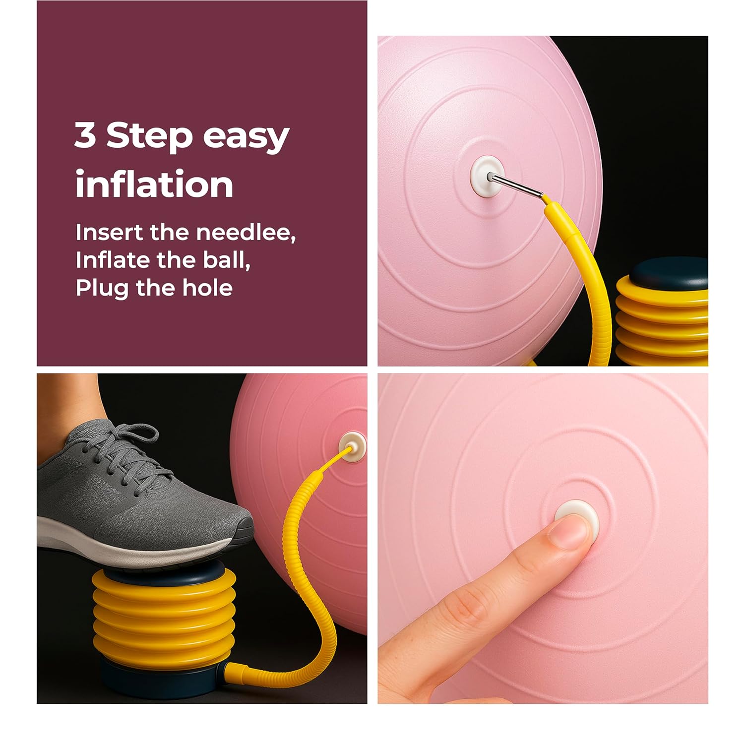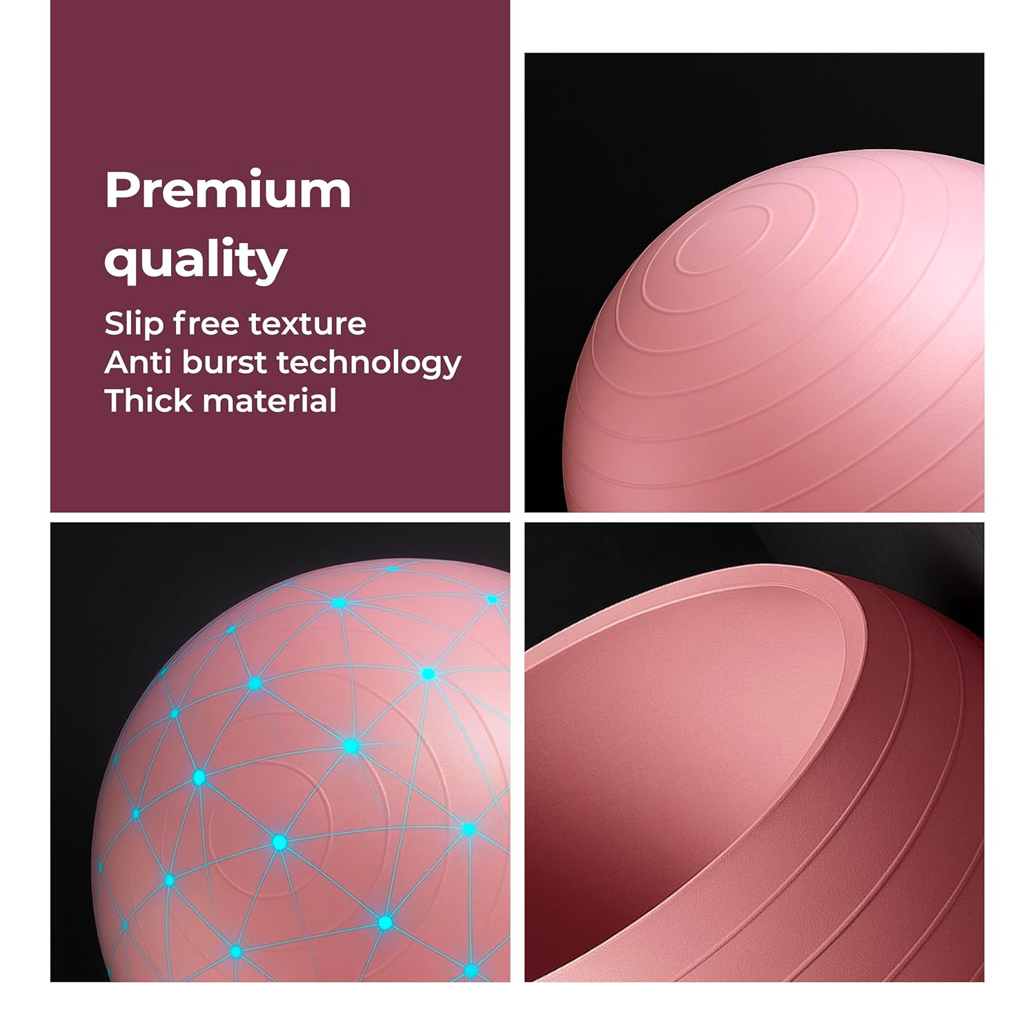 Complete Fitness: With gym balls, you can really challenge yourself and work every muscle in your body. Use it for various activities, such as arm strengthening routines, yoga stretches, cardio and Pilates. Perfect for strength, flexibility, or de-stressing! This exercise ball is the perfect addition for your Home Gym Equipment.