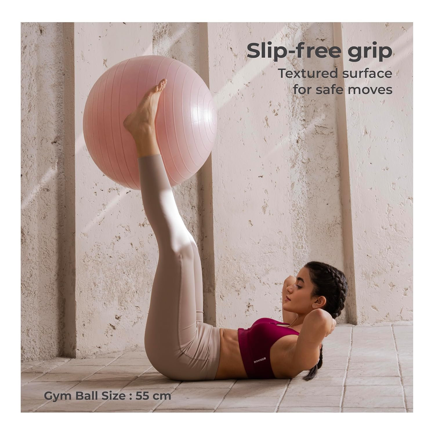 Anti-Slip & Durable: When you hold the Gym ball horizontally, the ribs will ensure that the ball will not slip from your hands because of the high-quality PVC material that makes it non-slip. It is also simple to carry. Overall, simple to handle.