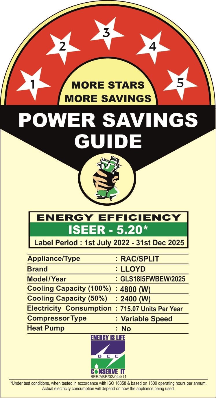 Energy Rating: 5 Star, Annual Energy Consumption: 715.07, ISEER Value: 5.2, please refer to energy label on the product page