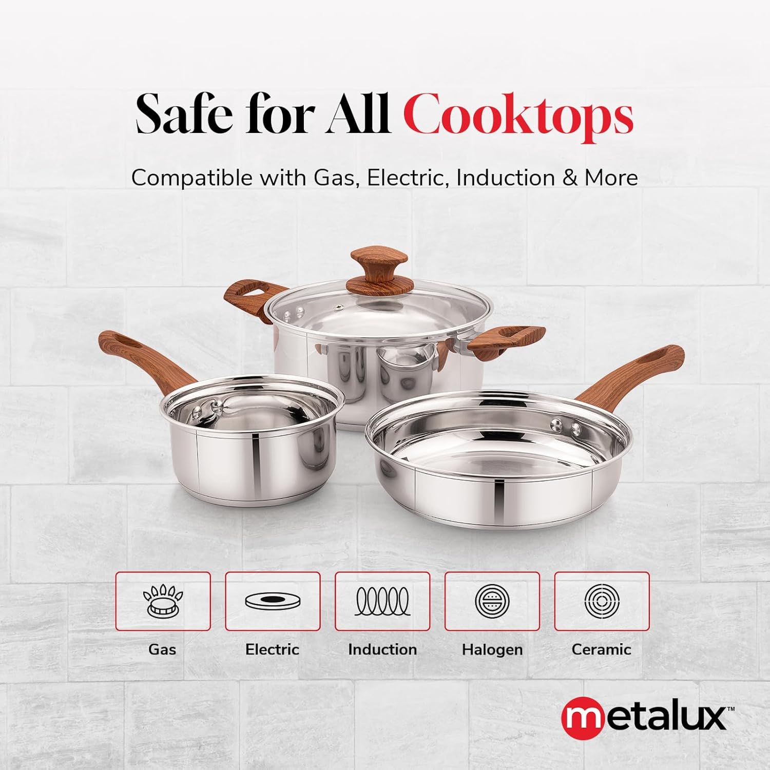 Compatible with All Heat Sources – Designed for versatility, each induction pan in this set works seamlessly on induction cooktops, gas stoves, and electric stovetops, making it a top choice in induction utensils.