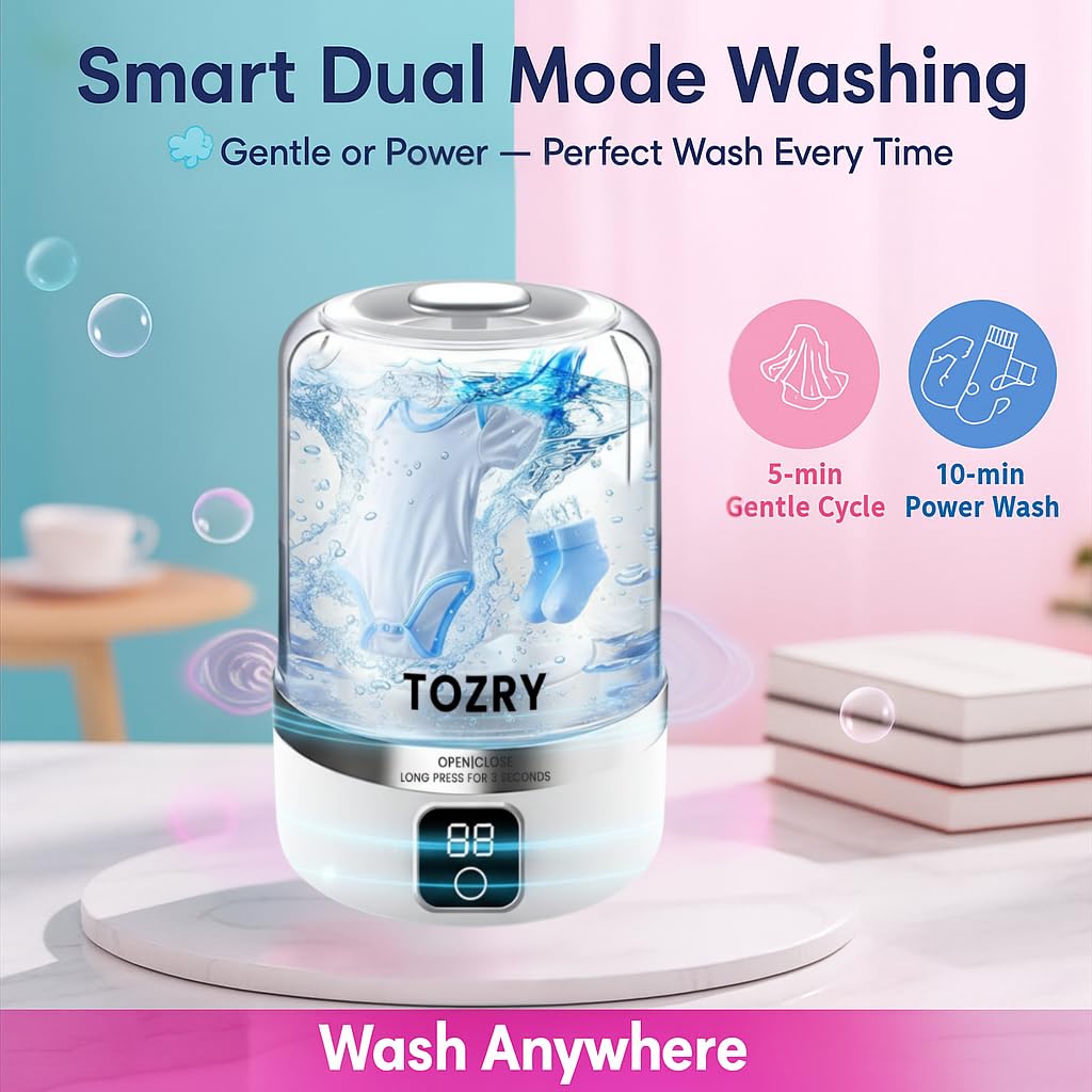 Compact & Space-Saving Solution: The mini washer machine is designed for convenience, delivering powerful cleaning in tight spaces while being easy to store when not in use