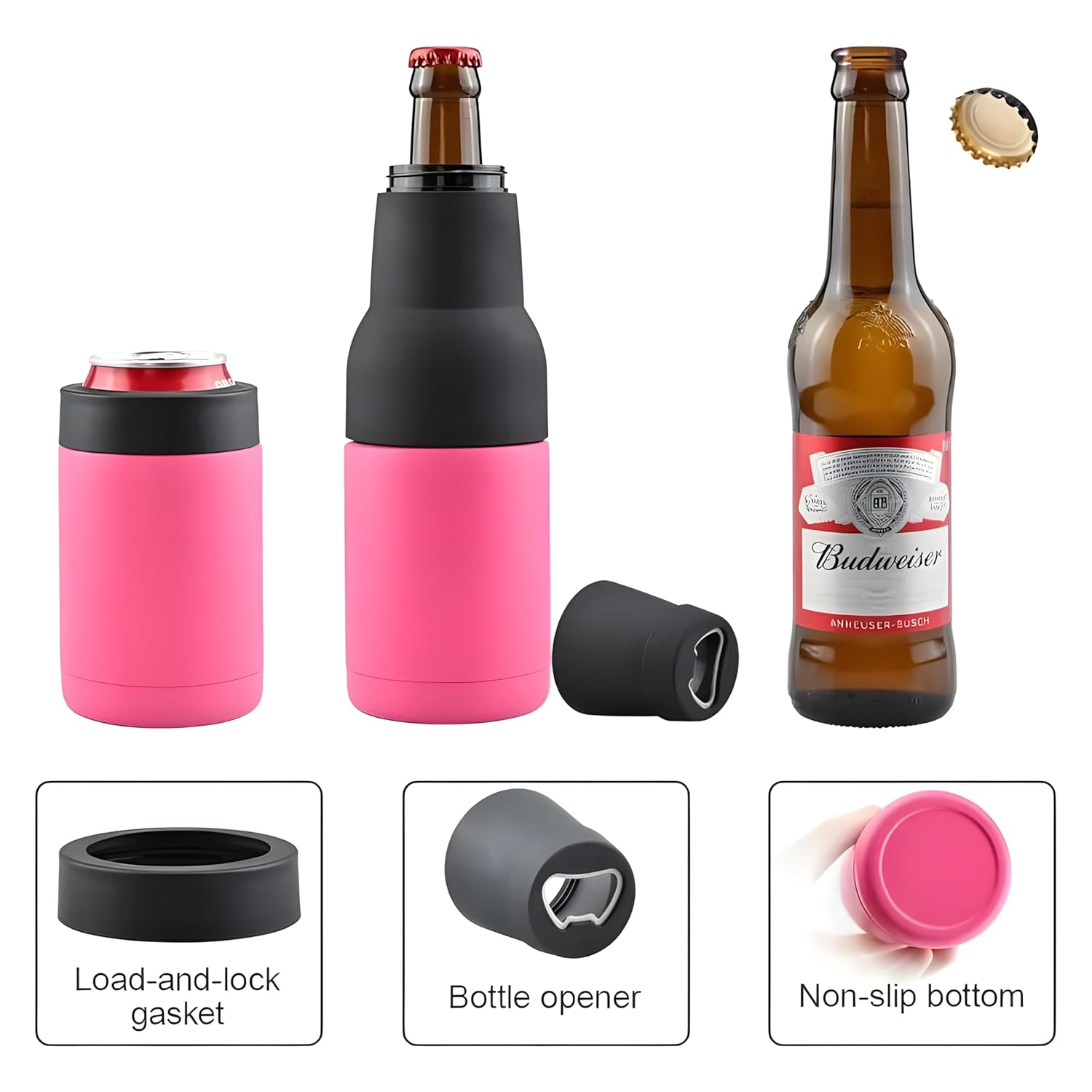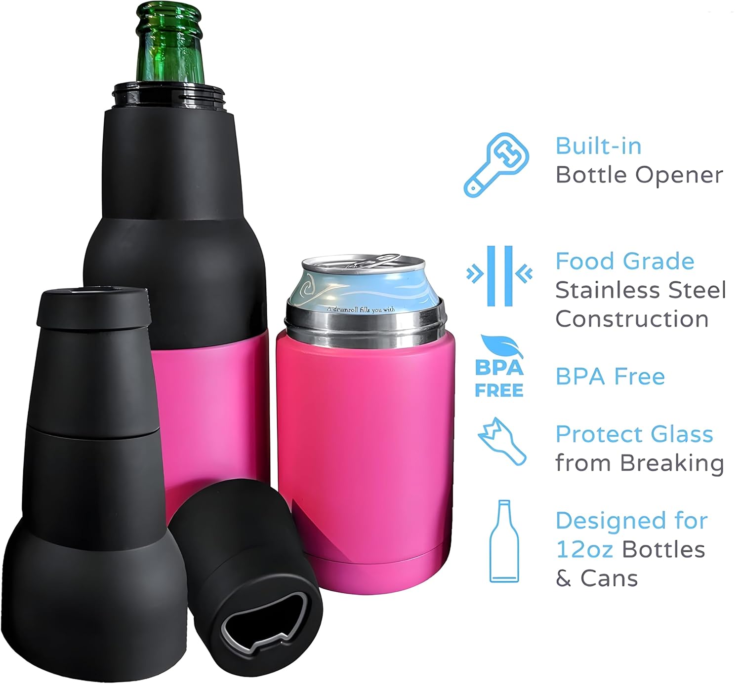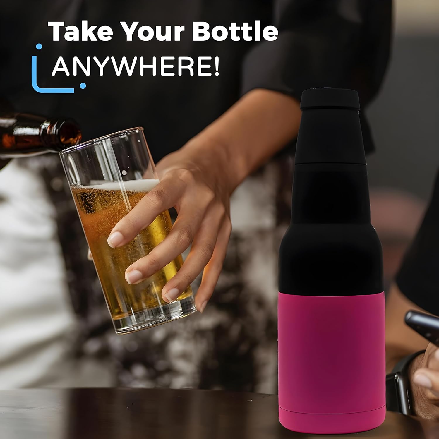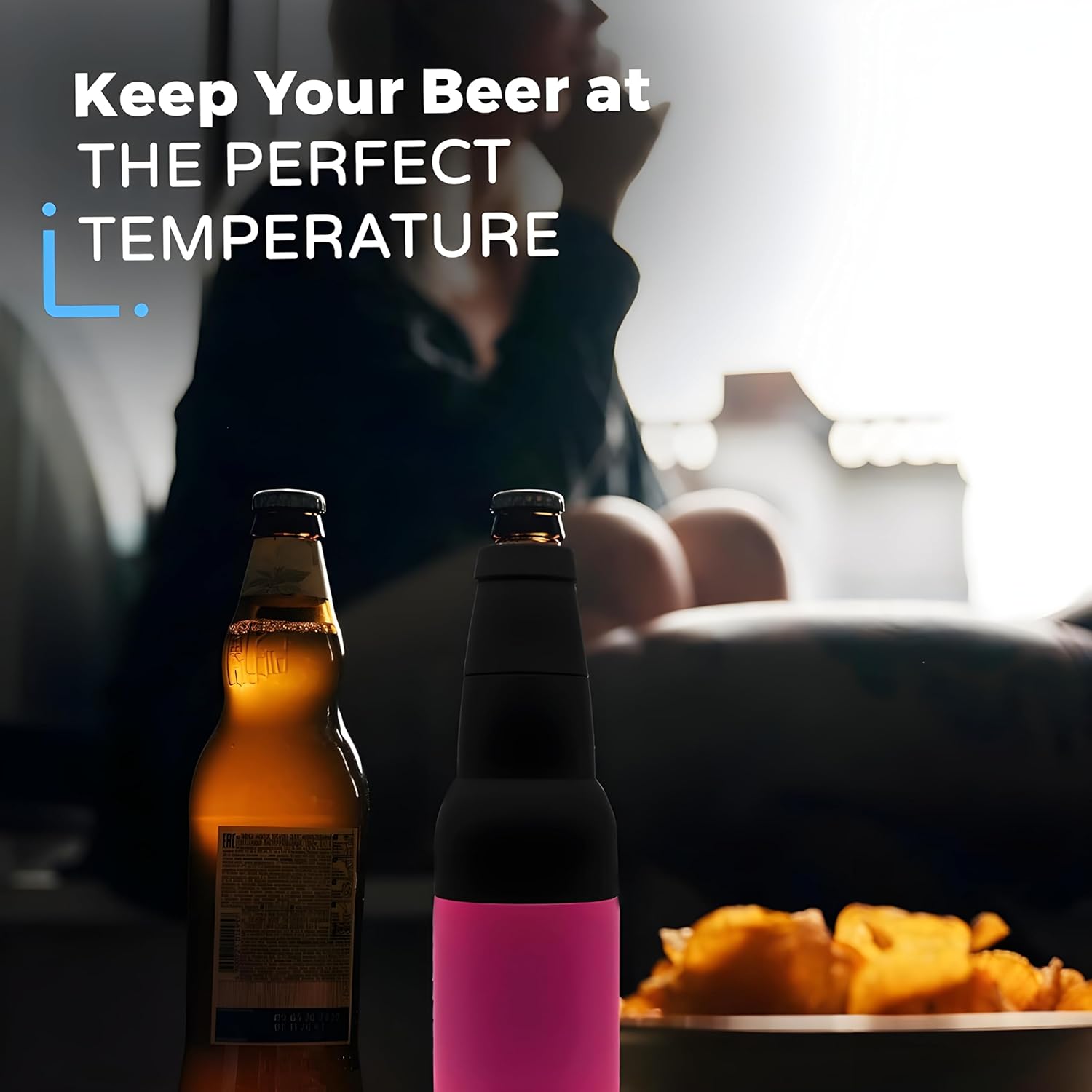 Motka Beer Bottle & Can Cooler with Built-in Opener for 330ml/500ml Cans & 330ml Pints/Bottles | Stainless-Steel | Drink Chiller | Insulated Thermos Can Holder & Bottle Drink Holder (Hot Pink)