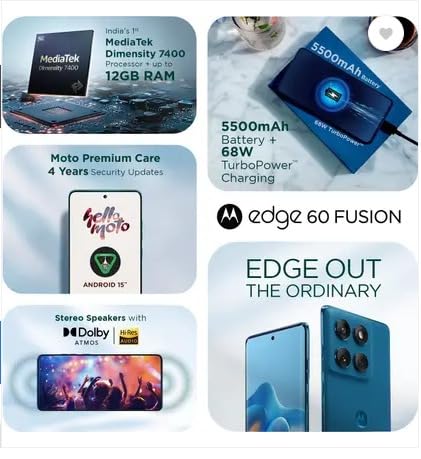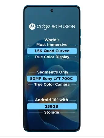The Moto Edge 60 Fusion offers a premium curved design, vibrant display, smooth and reliable performance, clean stock Android experience, versatile camera capabilities, long-lasting battery with fast charging support, and durable build quality, making it an ideal smartphone for everyday use and entertainment.