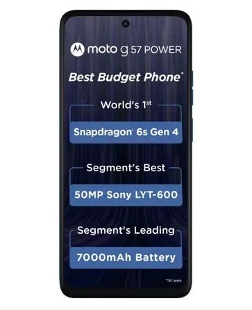 Motorola G57 Power 5G (Regatta, 8GB RAM, 128GB Storage) | Snapdragon 6s Gen 4 Processor | 6.72″ FHD+ Display | 50MP LYT-600 + 8MP Ultrawide | 8MP Selfie Camera | 7000mAh Battery, 33W TurboPower | IP64